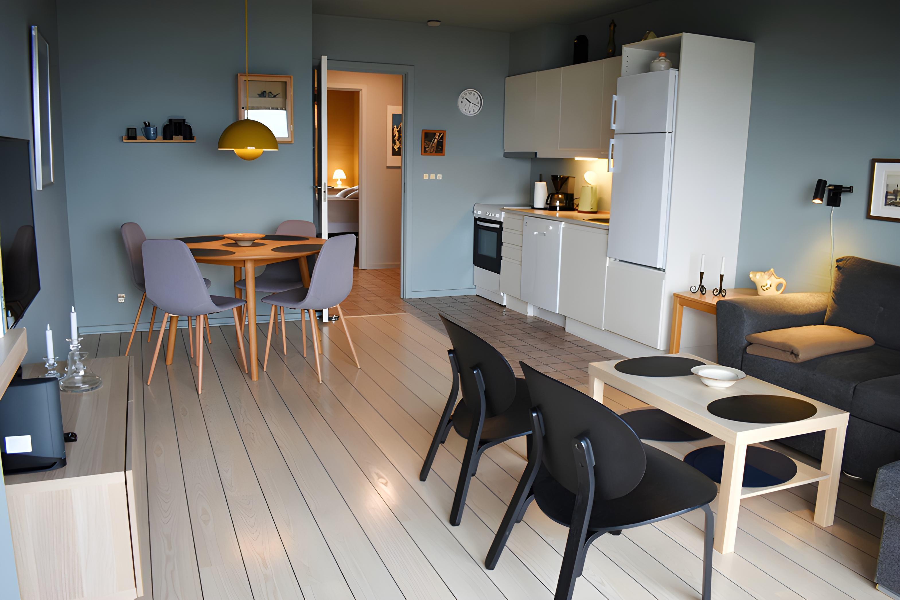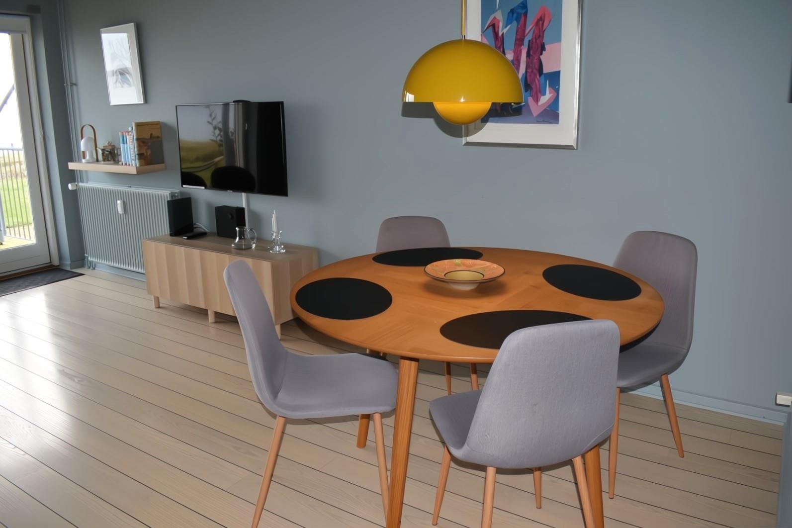 Denne lyse og indbydende ferielejlighed på 54 m² ligger i stueetagen og har en fantastisk beliggenhed direkte ved Sydstranden, kun en kort gåtur fra Kertemindes charmerende bymidte.