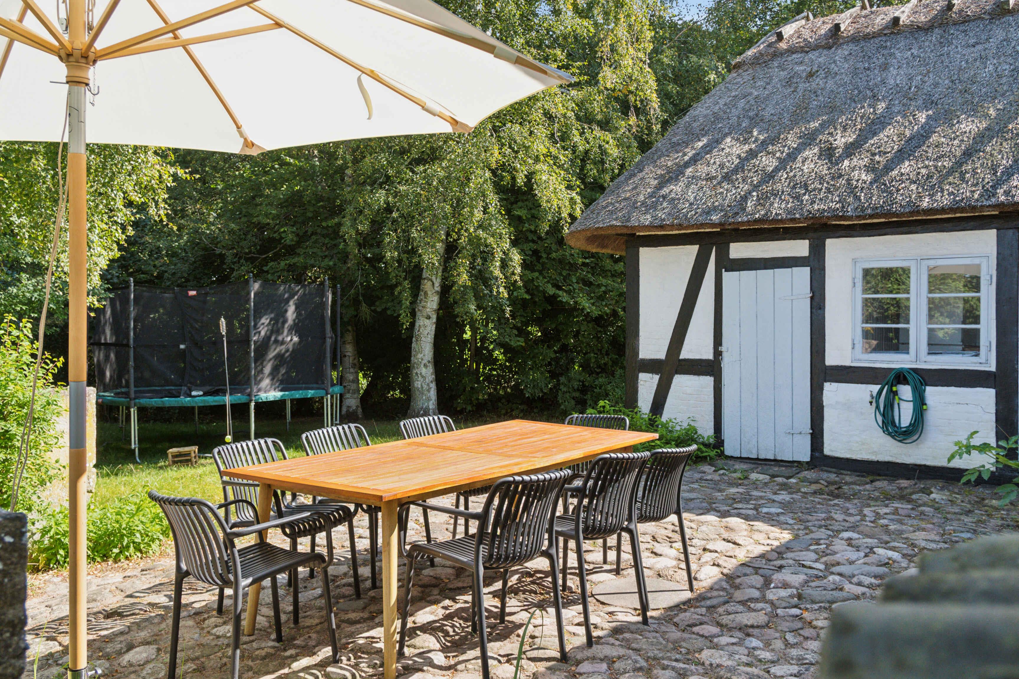 Charmerende stråtækt bindingsværkshus med plads til 10, stor have og børnevenlige faciliteter i fredelige omgivelser på Lolland.