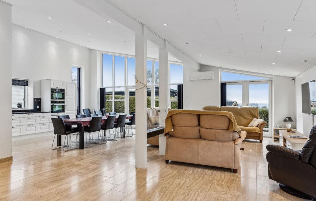 Dette rummelige hus tilbyder de ideelle rammer for ubekymrede dage. En lys stue lægger op til at slappe af i sofaen, hvor I kan nyde en storslået udsigt til husets grønne rammer. Nyd en afslappet kop kaffe, nyd hyggelige måltider ved det store spisebord eller tilbring sjove aftener med at spille bræt- og kortspil.