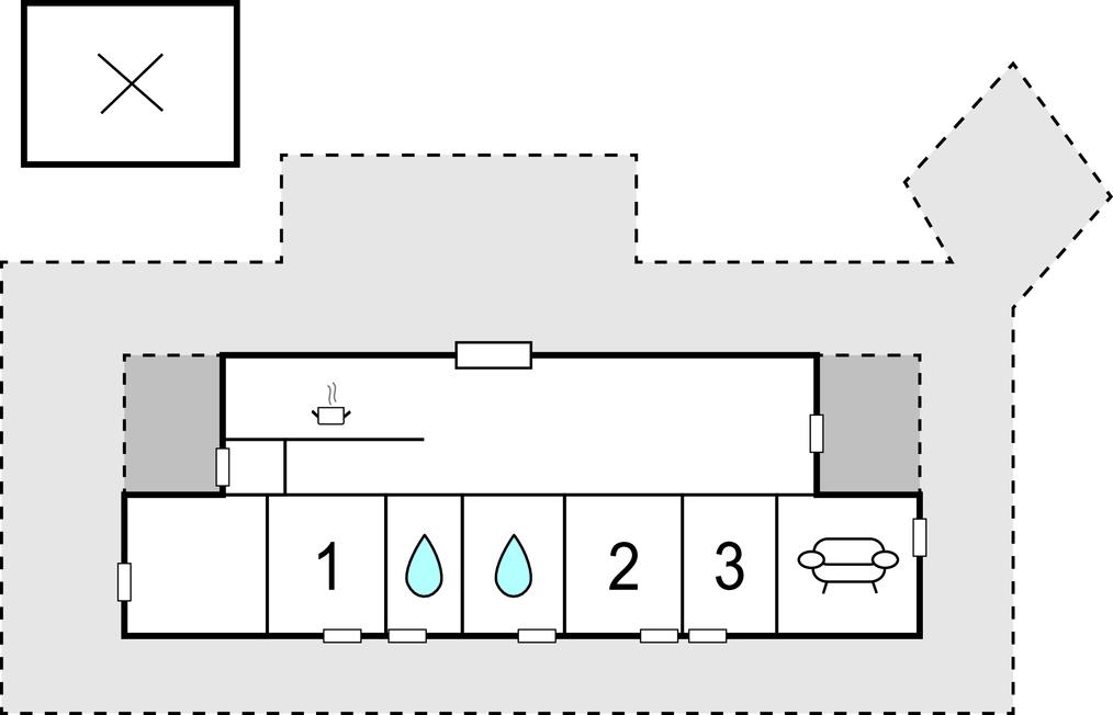 Badeværelse 6m2 (nr. 2) - WC. Varmt og koldt vand. Bruser