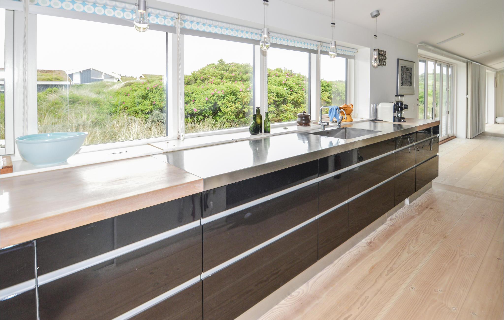 På en dejlig ugeneret klitgrund med vesterhavet som nærmeste nabo mod vest findes dette skønne feriehus. Selve huset er indrettet således at hvadenten man er 6 personer, eller vælger at nyde ferien som par, så er pladsen passende. Huset opleves aldrig som værende for stort eller for lille. Bag en klit på husets nordside går der en sti direkte ud til den skønne brede sandstrand. På en skøn sommerdag kan udsigten over klitterne nydes direkte fra terrassen, og holdes ferien på en blæsende regnfyldt efterårsdag, så er det en helt unik oplevelse at sidde lunt og godt bag det store vestvendte vinduesparti og følge naturens kræfter udfolde sig. Grønhøj Strand er med sin placering midt mellem Blokhus og Løkken, en af vestkystens absolut bedste udgangspunkter til en god og begivenhedsrig ferie for hele familien.