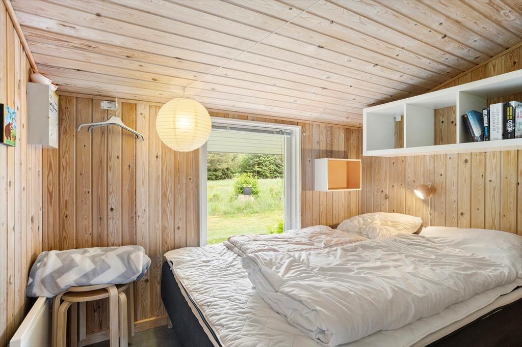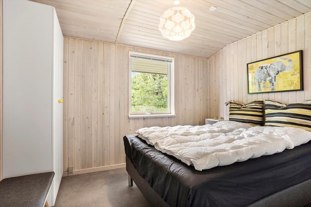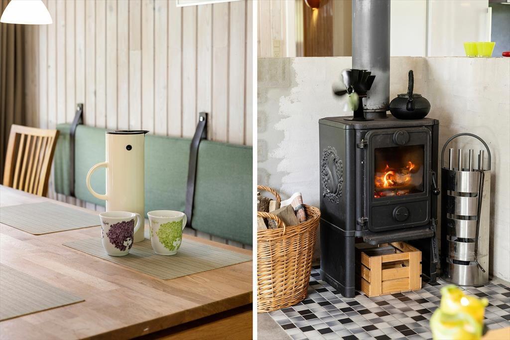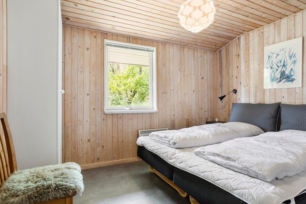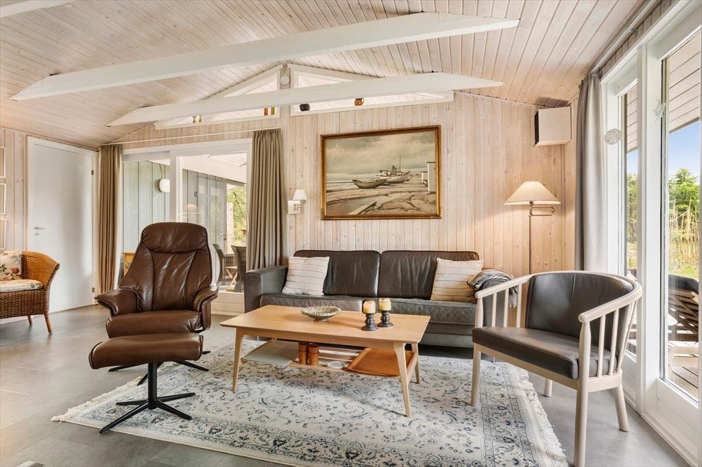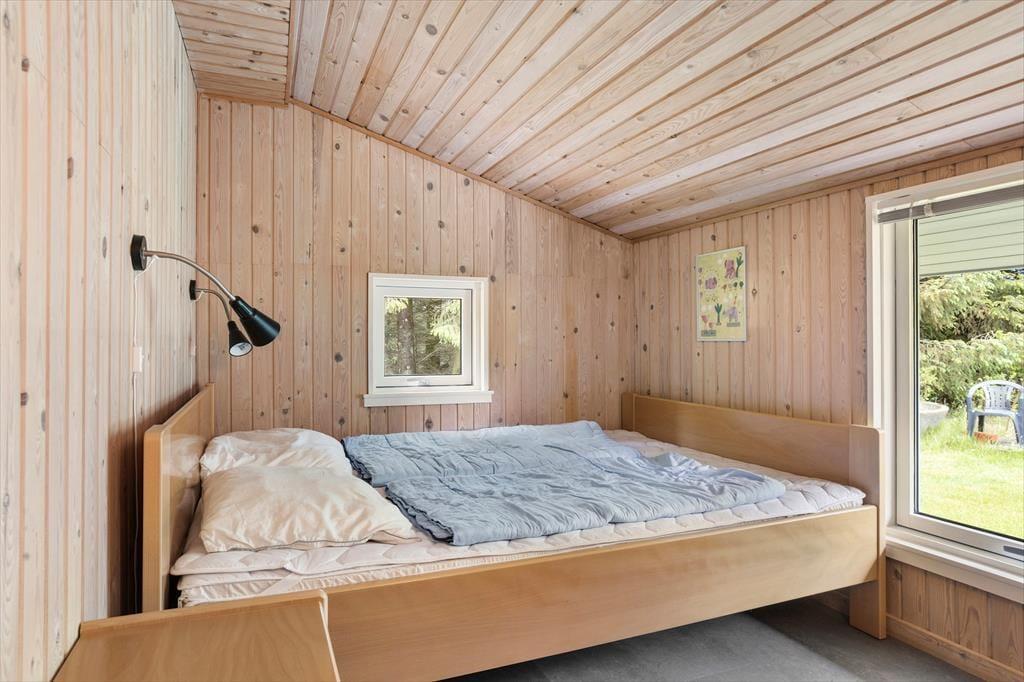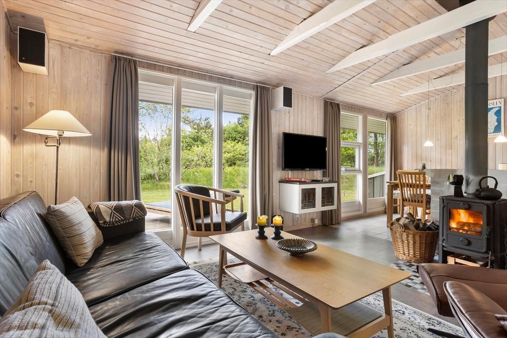 Indenfor i sommerhuset mærkes en varm og indbydende atmosfære, hvor hvert rum er indrettet med tanke på hygge og komfort. Den hyggelige stue, som er møbleret med bløde møbler, inviterer til afslapning foran den knitrende brændeovn – et perfekt sted at samles om en god bog eller hygge sig med familien efter en dag i den friske luft. Køkkenet er praktisk indrettet og med opvaskemaskine, så du hurtigt kan få lavet mad og samtidig være en del af fællesskabet i stuen. Der er gode sovepladser til hele familien, og med husets varme og imødekommende indretning kan du virkelig føle dig hjemme.