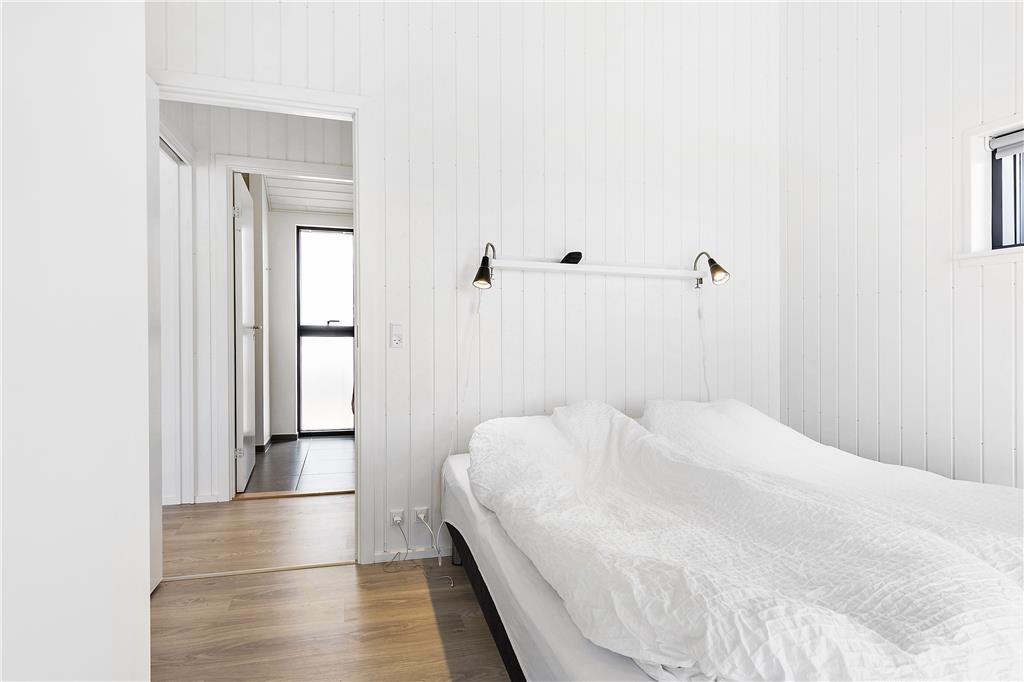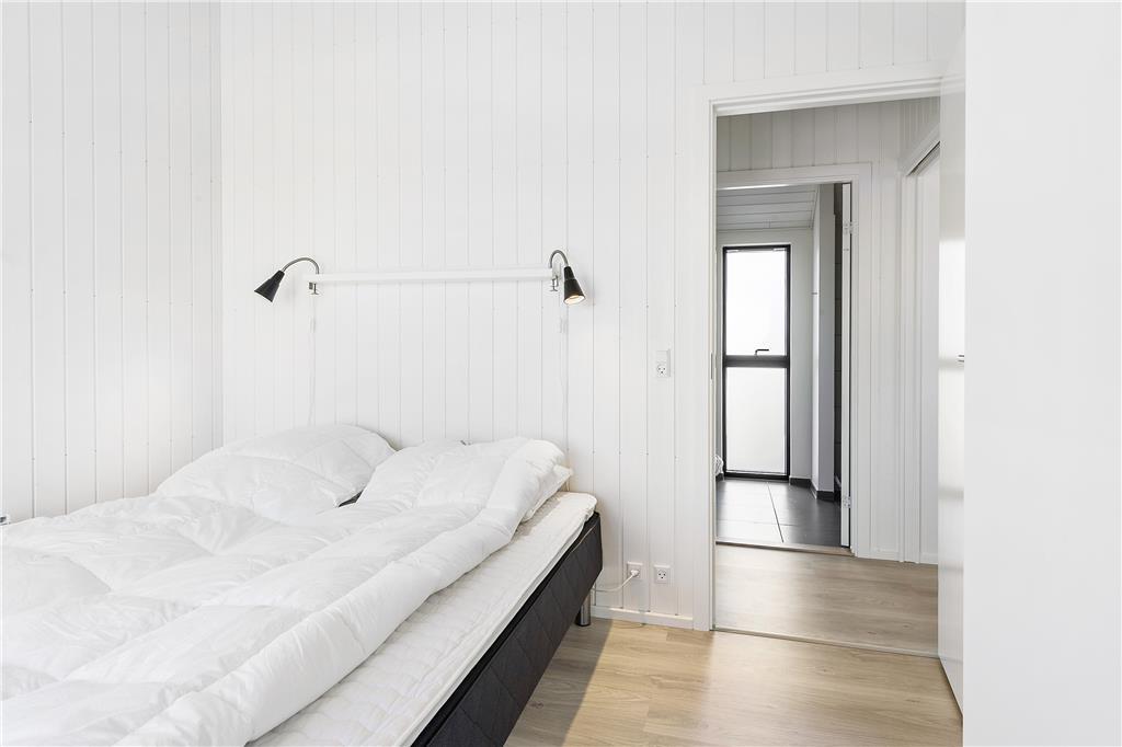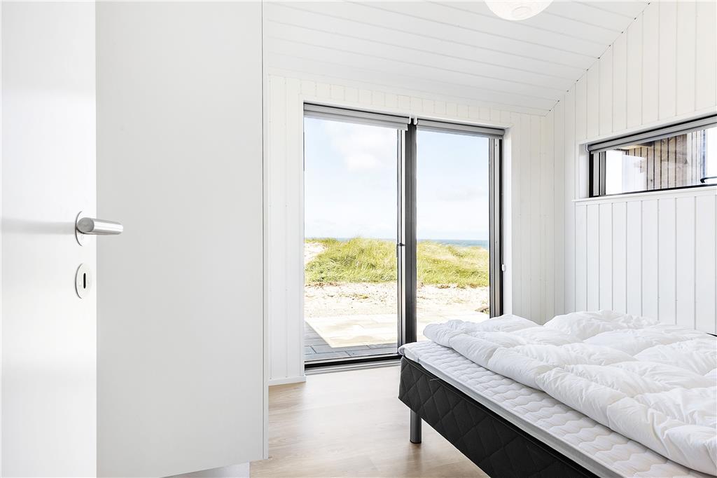 Det lyse og moderne feriehus blev bygget i 2017 og er indrettet med et stort centralt køkken-alrum, som er perfekt til både madlavning og samvær. Her kan du stå og tilberede dagens måltid, samtidig med at du nyder den imponerende udsigt over havet og naturen gennem de store vinduespartier, der går fra gulv til loft. Med loft til kip og et åbent rumforløb får du en fantastisk rummelighed og lysindfald. Brændeovnen giver en hyggelig stemning på kølige dage, og varmepumpen sikrer en behagelig temperatur året rundt. Sommerhuset har to soveafdelinger, hver med to værelser og badeværelse, og begge afdelinger har udgang til en terrasse, hvor du kan nyde den friske havluft og den smukke udsigt. Hvert værelse er indrettet med fokus på komfort og afslapning, så du kan trække dig tilbage til roen efter en aktiv dag i naturen.