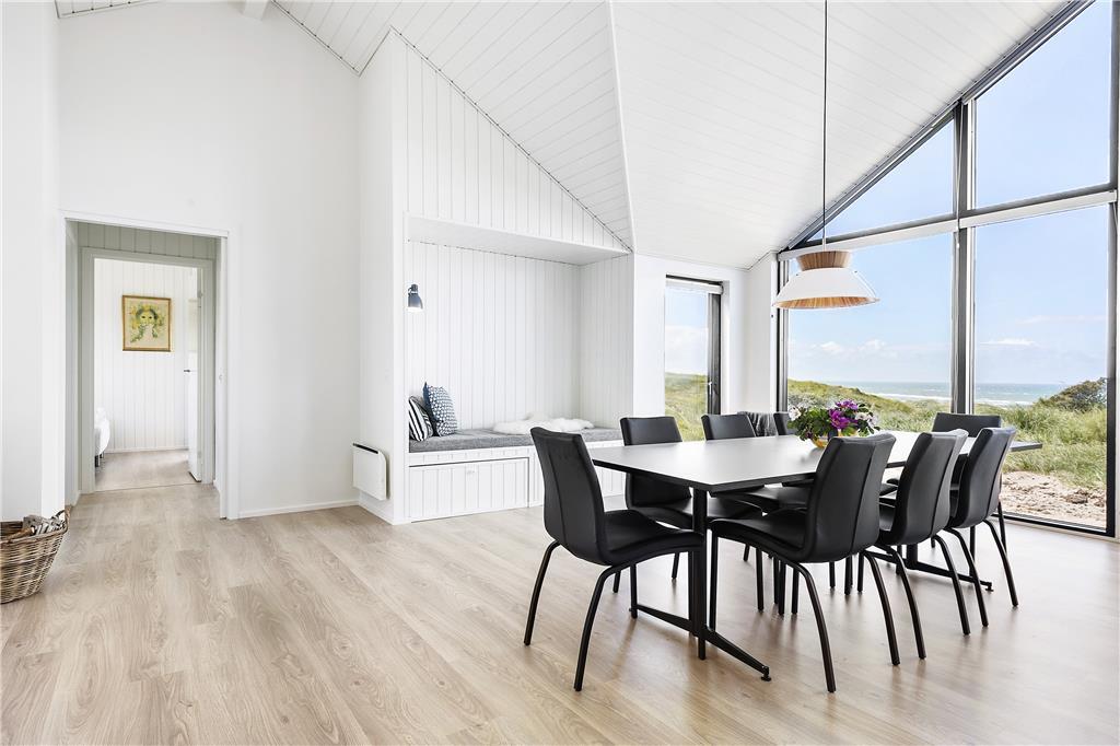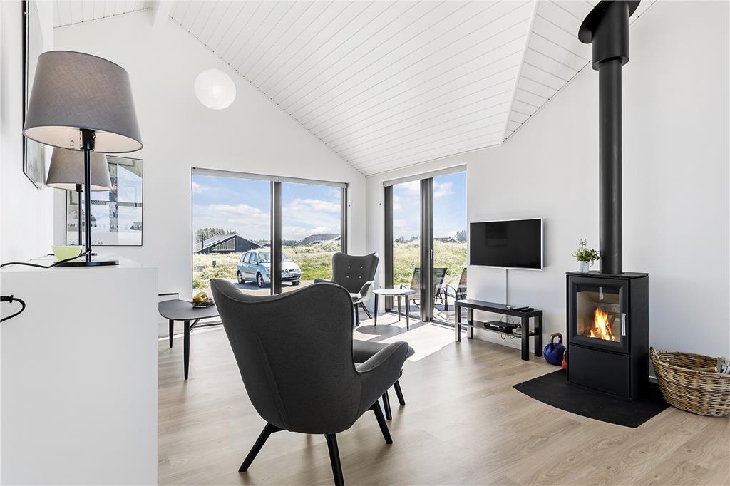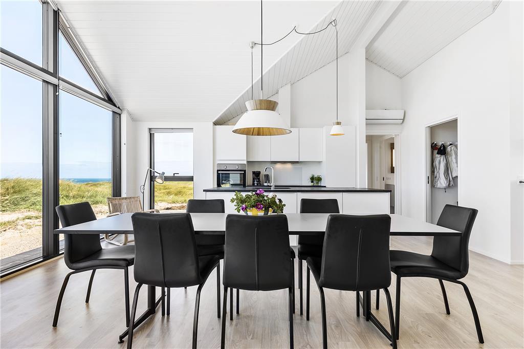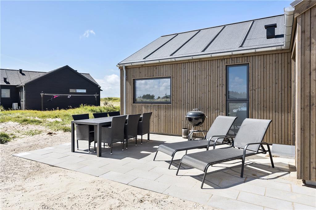 Det store terrasseareal er et ideelt sted at slappe af og lade op. Mod vest får du en imponerende udsigt over Vesterhavet og den kuperede natur, og her kan du nyde de smukke solnedgange, der fylder himlen med varme farver. Terrassen er et fantastisk udendørs opholdsområde, hvor du kan grille med familien eller bare nyde stilheden og udsigten. Det højt beliggende sommerhus er omgivet af den rå og uspolerede natur i Kettrup Bjerge, som indbyder til lange gåture langs de mange stier og den brede sandstrand. Her er det muligt at komme helt tæt på naturen og mærke Vesterhavets friske brise på huden. Det er den perfekte oase til både afslapning og naturoplevelser.