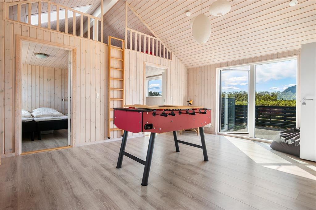 Fra stuen er der adgang til et sjovt aktivitetsrum, hvor børn og barnlige sjæle helt sikkert nemt kan få mange timer til at gå. Her er bordfodboldspil og fladskærm til Nintendo Wii - Et skønt rum, som også gør sommerhuset velegnet til ferie udenfor den varme højsæson og mulighed for konkurrencer familien imellem.