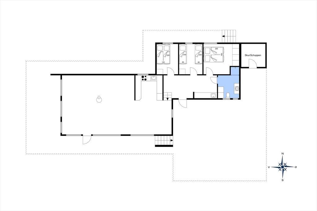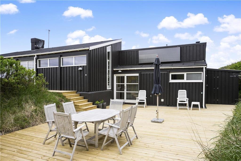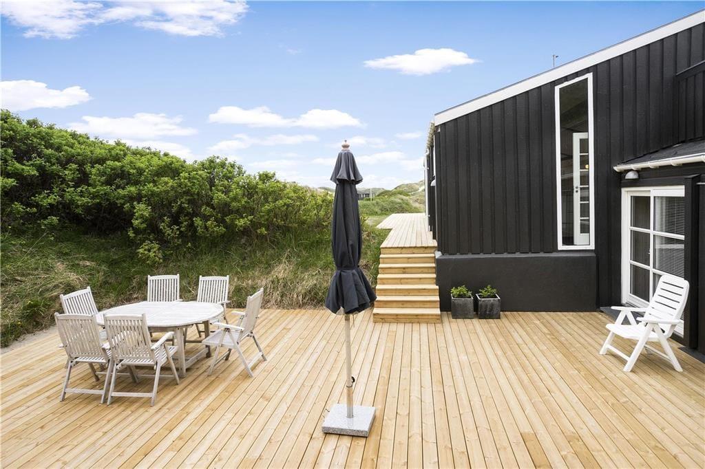 Den store naturgrund indbyder til leg og tumlen. De høje klitter skærmer grunden af og giver god læ for Vestenvinden. Der er træterrasse rundt om hele huset i forskellige niveauer, så det er muligt at følge solen hele dagen, og med gode havemøbler, liggestole og grill kan man udnytte soltimerne fuldt ud.
