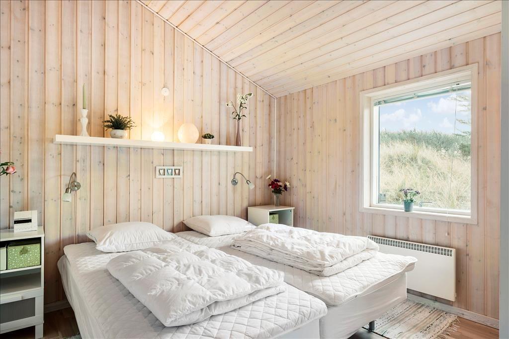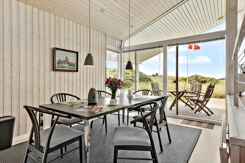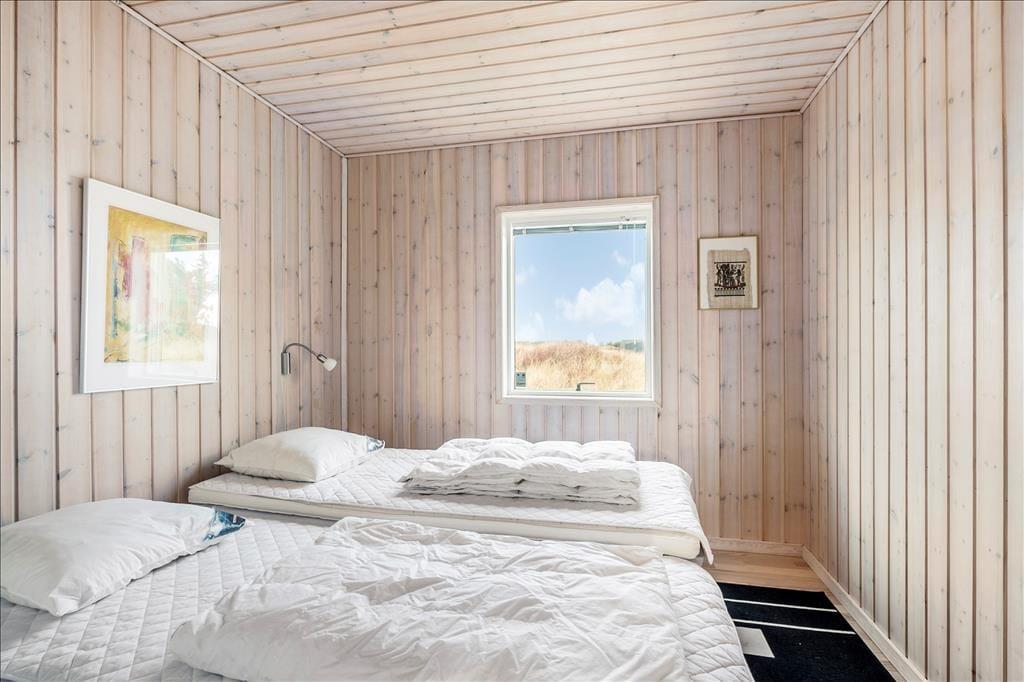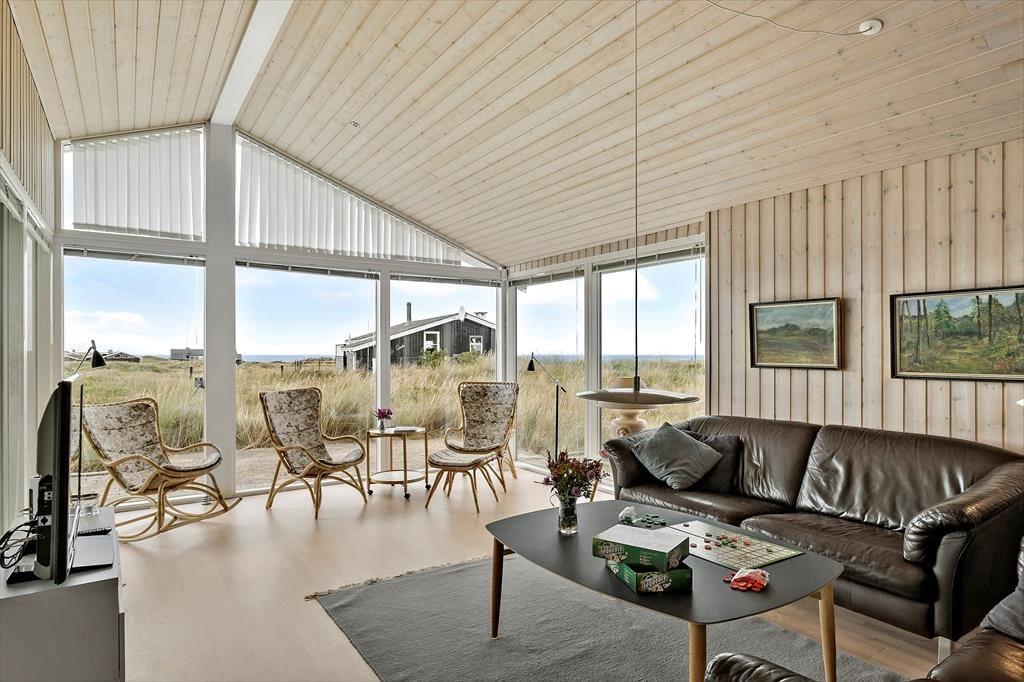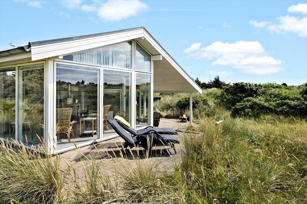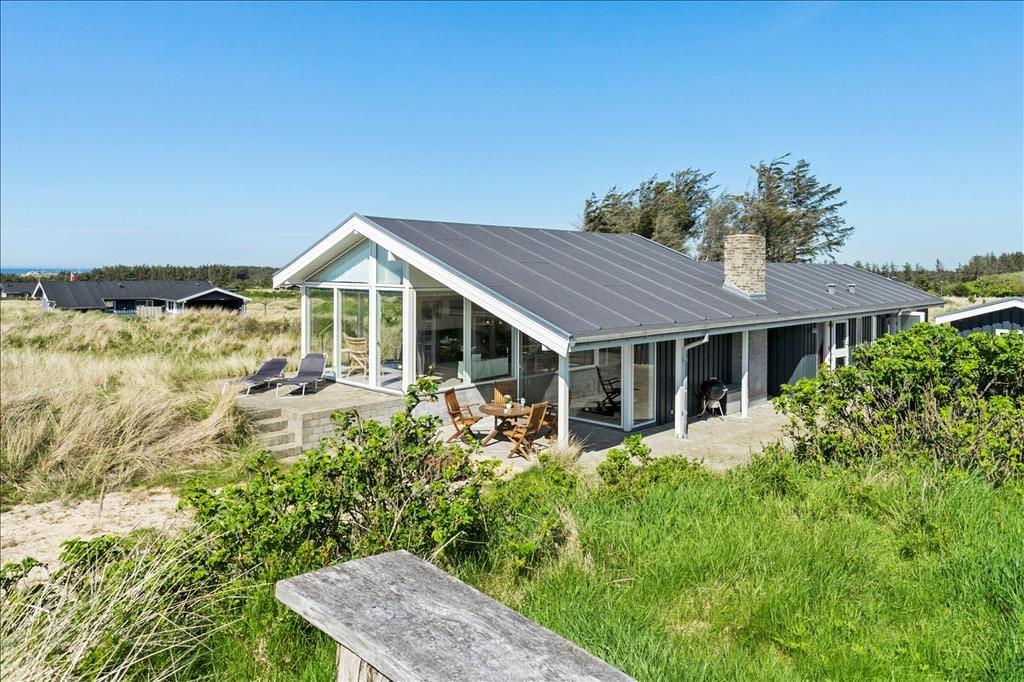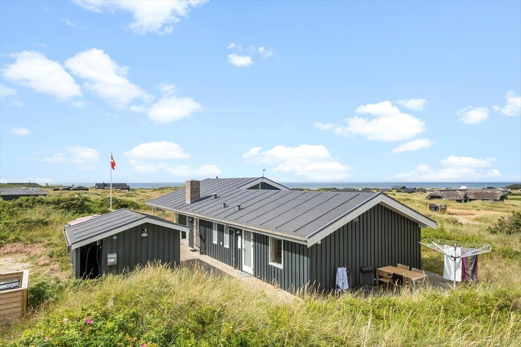 Det store, flotte træsommerhus er på hele 145 m2. Det fremstår nyt, lyst, velholdt og indbydende. Otte personer kan se frem til en yderst behagelig ferie. Samtidig er sommerhusets planløsning gennemtænkt, så det også er perfekt til to personer. Sommerhuset tilbyder tre rummelige soveværelser, et køjerum og to badeværelser, der begge byder på gulvvarme og brusenicher. Sommerhusets samlingspunkt er en stor, niveau opdelt opholdsafdeling med stue og køkken-alrum i ét. Her er der loft til kip, brændeovn og lysindfald fra tre verdenshjørner, og især fra stuen, som ligger et par trin over køkken-alrummet, er havudsigten imponerende, og man har en oplevelse af at sidde midt ude i klitterne.