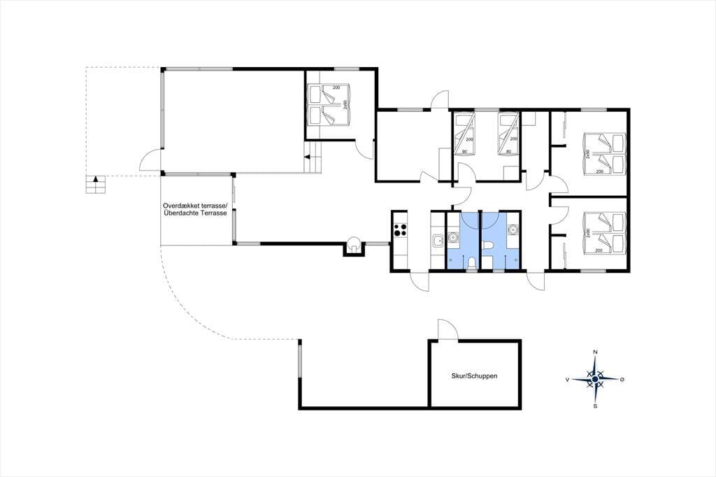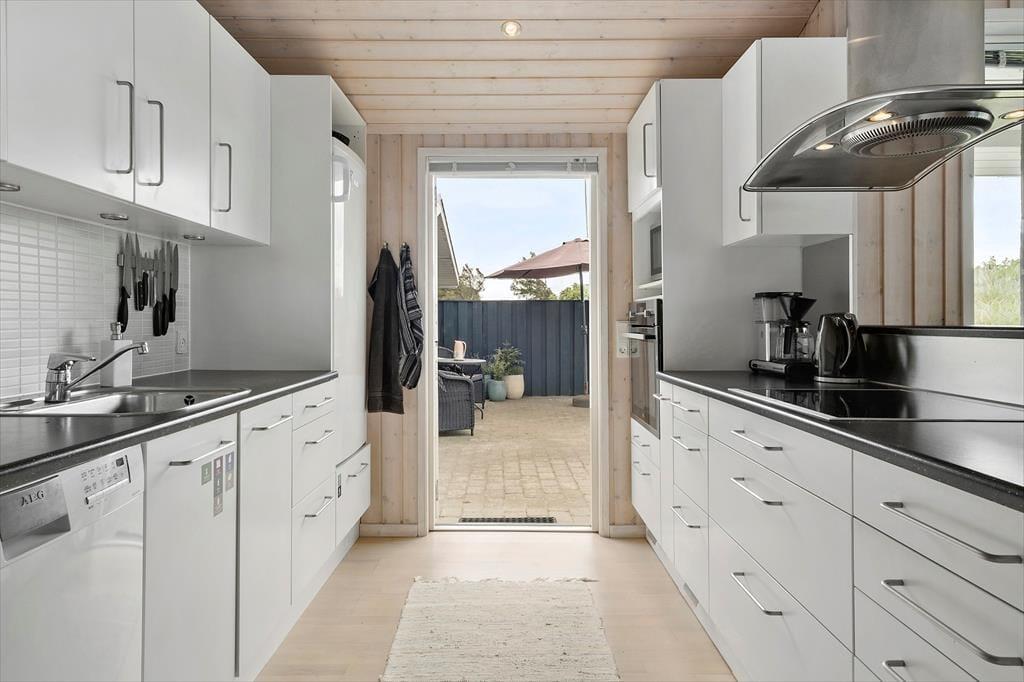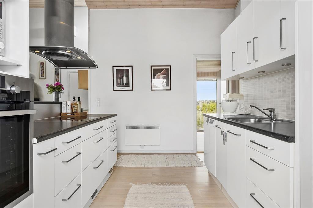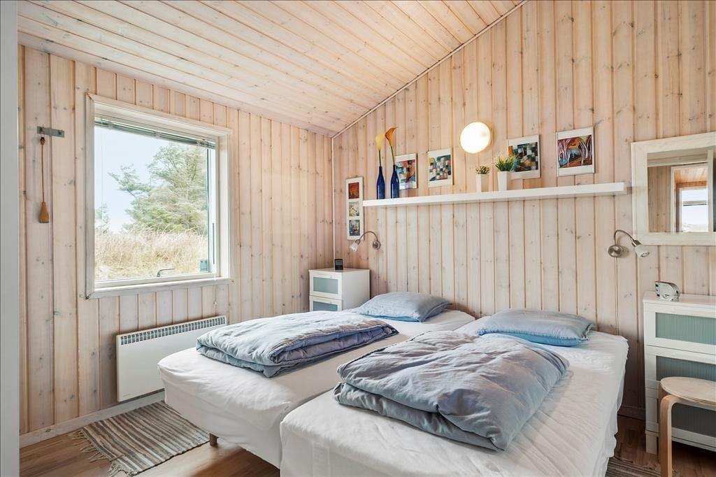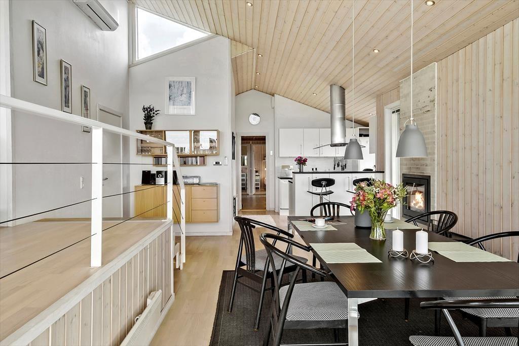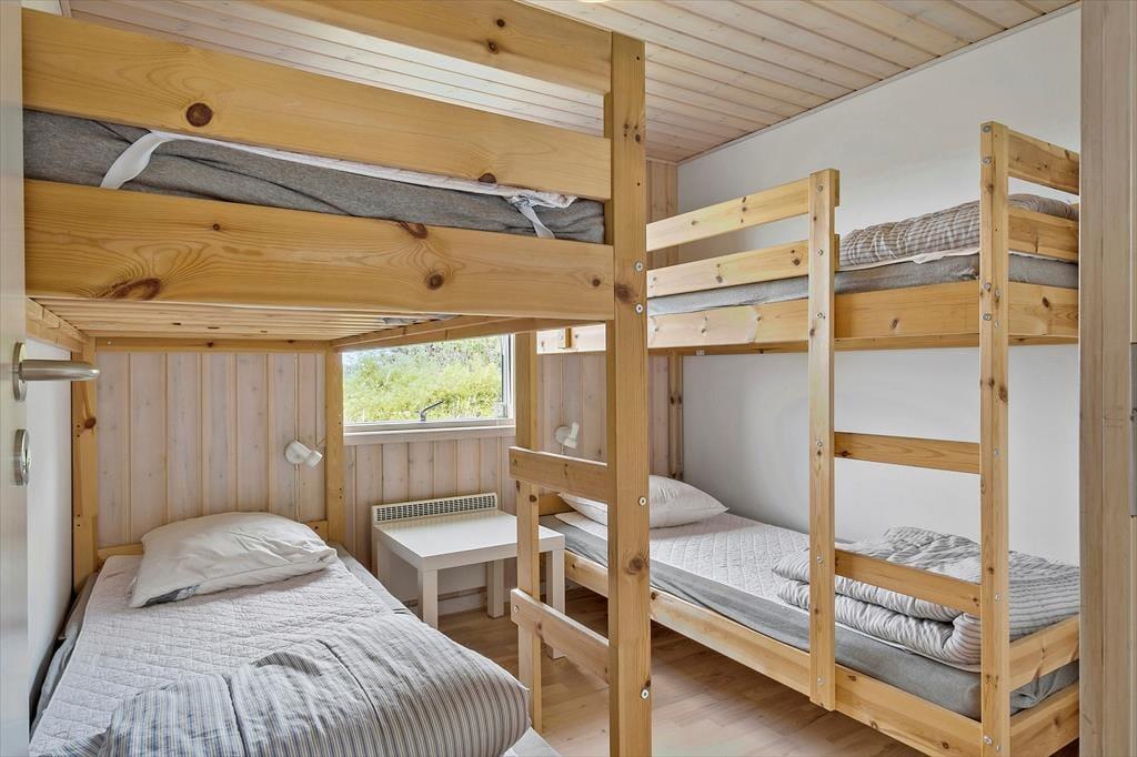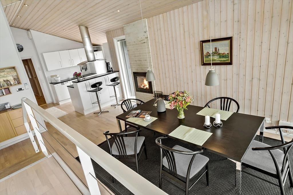 Det store, flotte træsommerhus er på hele 145 m2. Det fremstår nyt, lyst, velholdt og indbydende. Otte personer kan se frem til en yderst behagelig ferie. Samtidig er sommerhusets planløsning gennemtænkt, så det også er perfekt til to personer. Sommerhuset tilbyder tre rummelige soveværelser, et køjerum og to badeværelser, der begge byder på gulvvarme og brusenicher. Sommerhusets samlingspunkt er en stor, niveau opdelt opholdsafdeling med stue og køkken-alrum i ét. Her er der loft til kip, brændeovn og lysindfald fra tre verdenshjørner, og især fra stuen, som ligger et par trin over køkken-alrummet, er havudsigten imponerende, og man har en oplevelse af at sidde midt ude i klitterne.