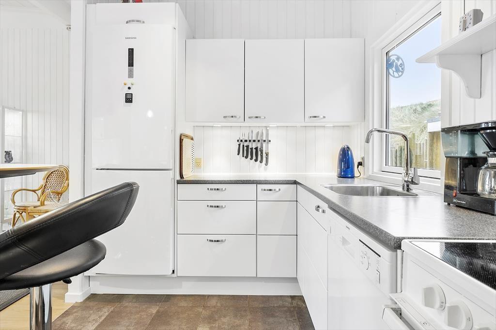 Fra sommerhuset har I få hundrede meter ned til stranden, og en del af den korte tur kan foregå via små, hyggelige stier. Det bakkede klitlandskab lægger op til mange udflugter til fods, uanset om I vil på en lang vandretur eller bare daske rundt i nabolaget. En dukkert i Vesterhavet virker stort set altid opkvikkende, og ellers kan I bare slappe af og bygge sandslotte på stranden. Både Løkken og Blokhus ligger i kort køreafstand, og Fårup Sommerland er med sikkerhed et besøg med, hvis I har børnene med på ferie.