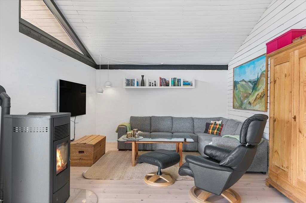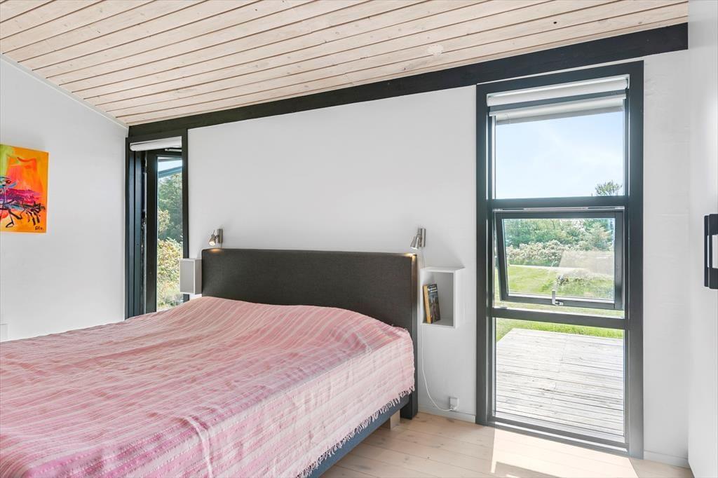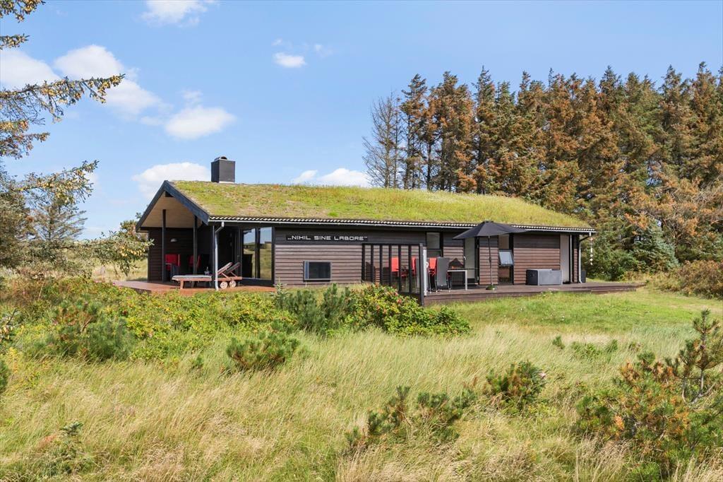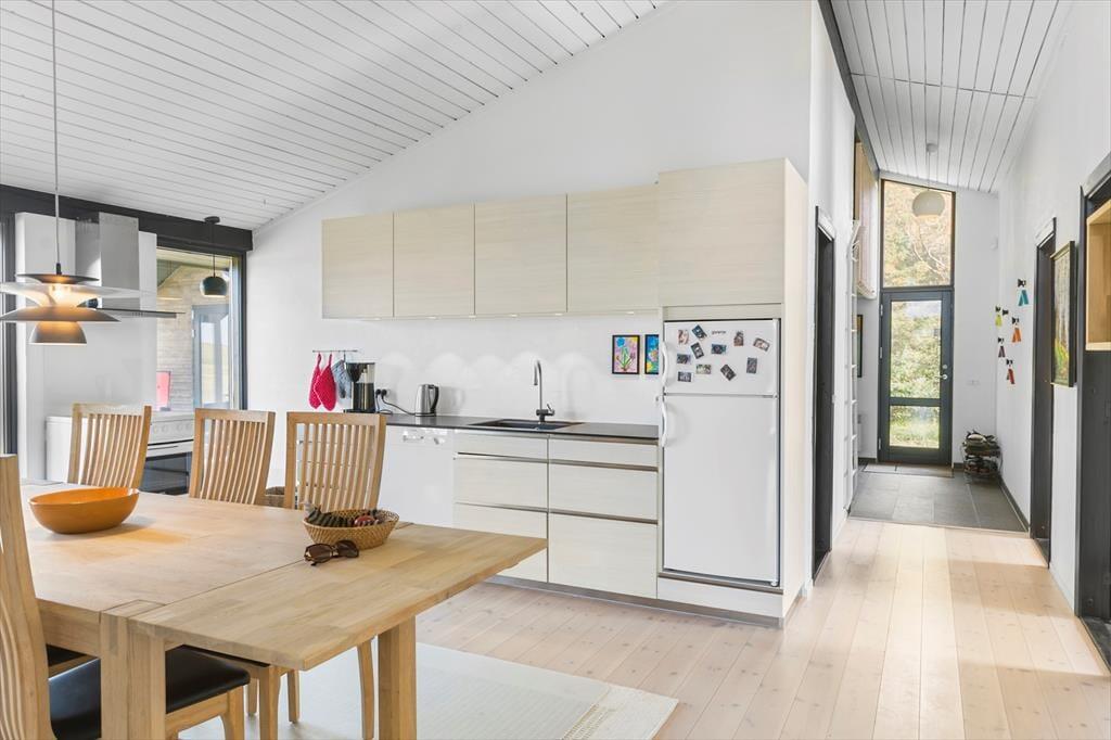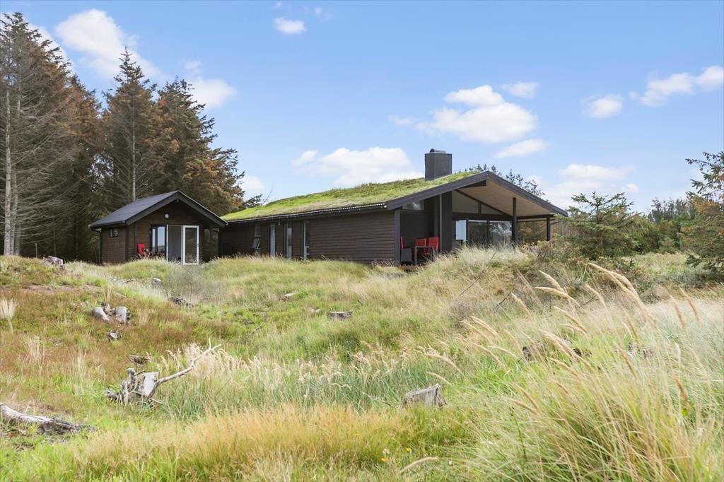 Med sin brune træfacade og sit grønne tag passer sommerhuset godt ind i de naturskønne omgivelser. Inden døre fremstår alle rum lyse og indbydende, for hvid er den gennemgående farve på væggene, loftet er ført op til kip, og møblementet er både pænt og komfortabelt. Og gennem vinduerne kan I se ud på det bølgende klitlandskab, hvilket er en skøn påmindelse om, at I er på ferie langt væk fra hverdagens rutiner. I den ene ende af huset ligger spisekøkkenet og stuen i åben forbindelse, så I er tæt på hinanden – også selvom nogle af jer kræser om madlavningen og andre spiller kort eller ser tv nær brændeovnen. Brusebadeværelset er dejligt rummeligt, og de to soveværelser er begge udstyret med gode senge og garderobeskabe. Annekset er også et rart sted at sove, og alt i alt er der sengepladser til seks personer.