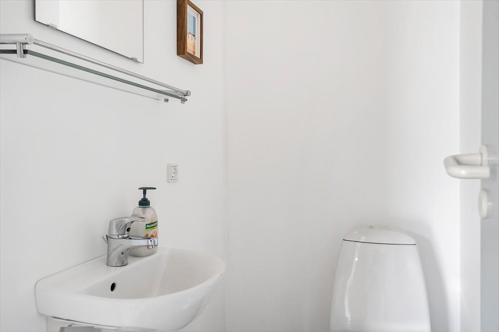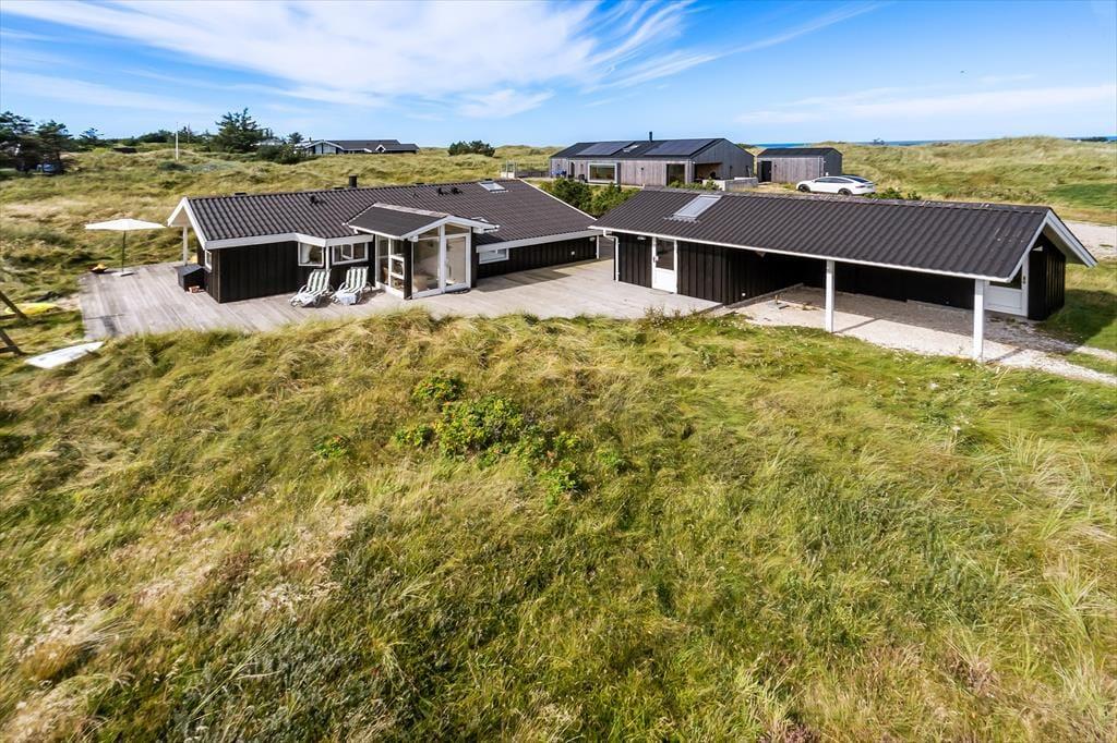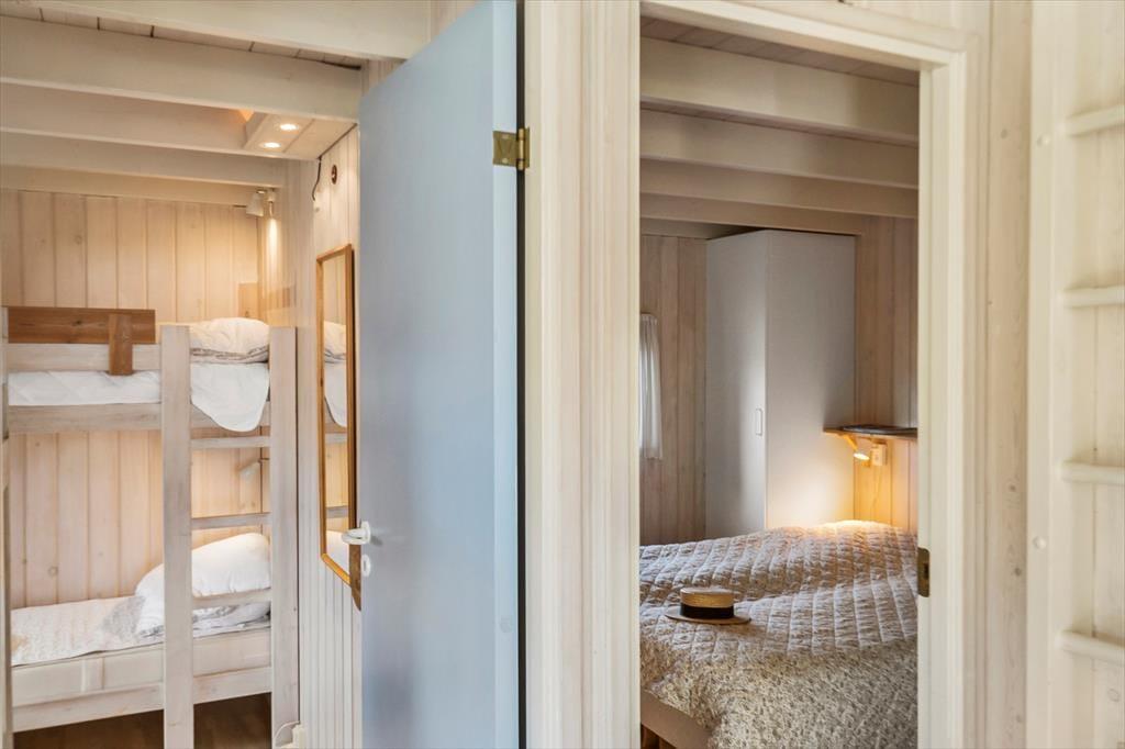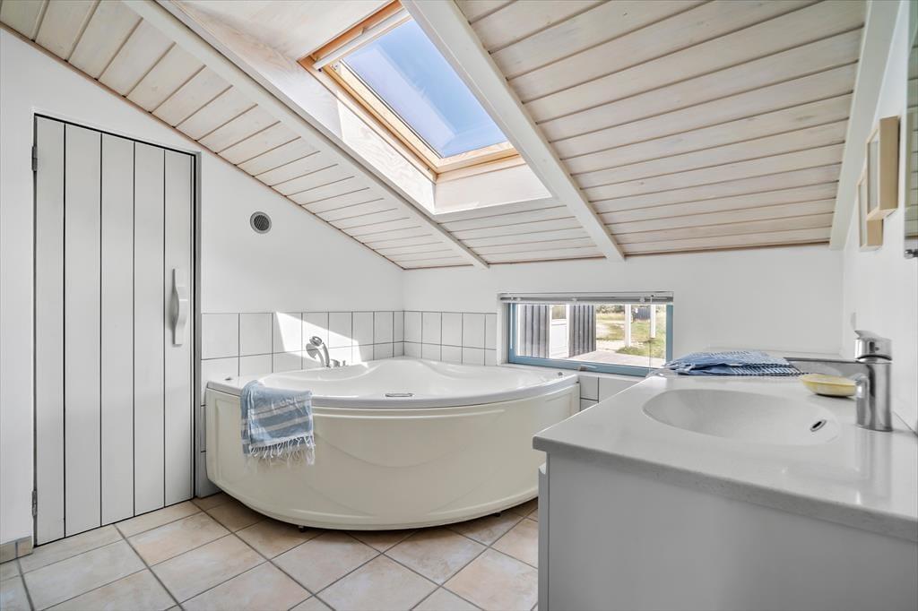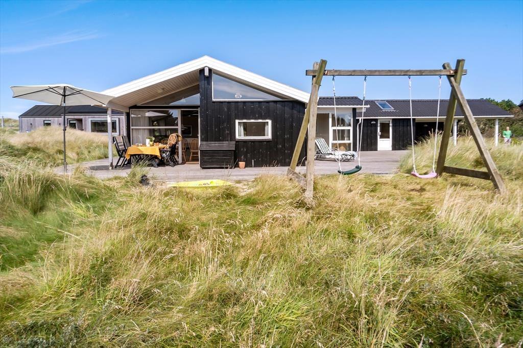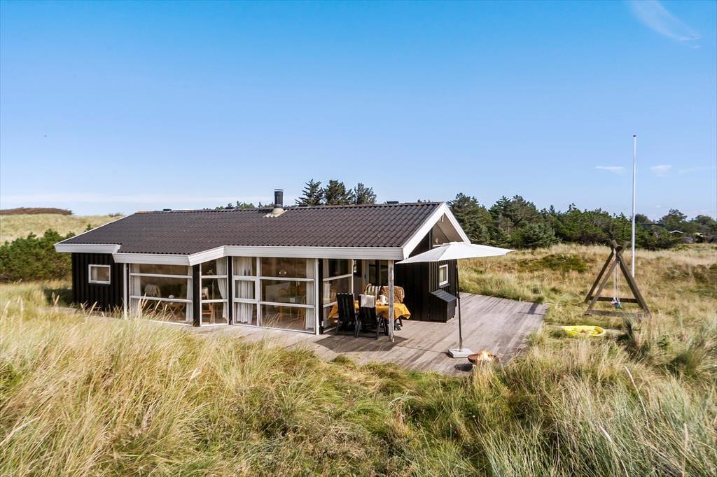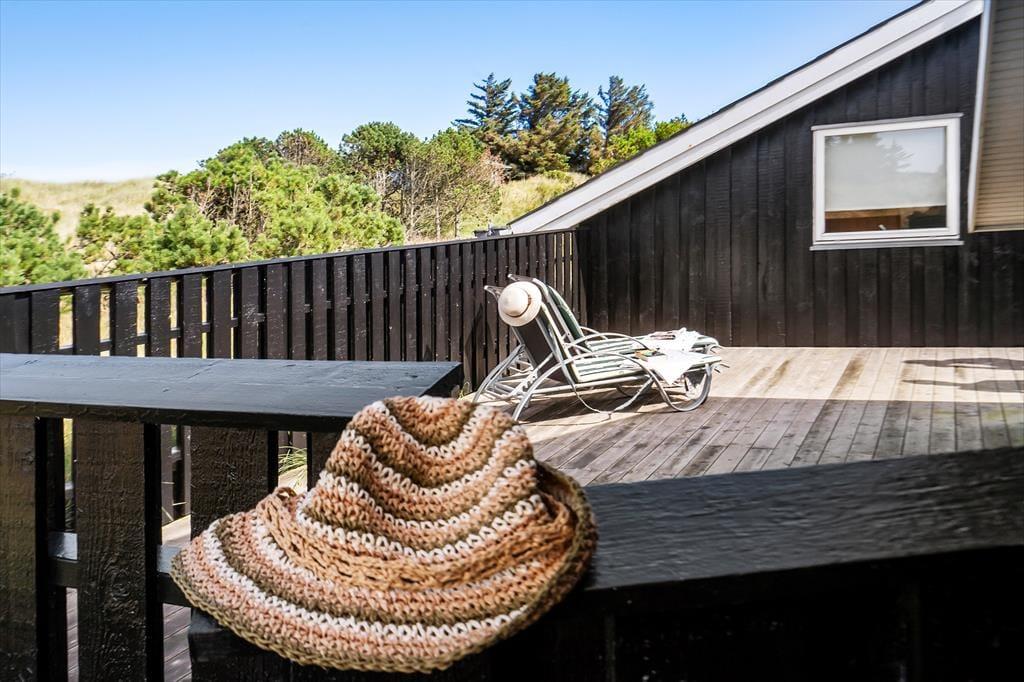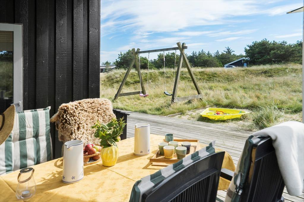 Inden døre kan du se lige ud på bølgende marehalm og spredte fyrretræer under den høje himmel, så selv når du er inden døre, kan du mærke nærheden til naturen. På typisk sommerhusmanér er der lys træbeklædning og loft til kip, og en brændeovn hører selvfølgelig også til i stuen – foruden en stige, der fører op til en hems, hvor børnene kan lege eller måske endda overnatte. Det lyse og rummelige hus byder for øvrigt på tre gode soveværelser, et gæstetoilet og et badeværelse, og sidstnævnte skal du især lægge mærke til, hvis du er vild med wellness, for her er der spabad og sauna. Det tilhørende anneks kan bruges til flere ting: Bordfodboldbordet og tv’et kan underholde familien, og sovesofaen kan bruges som ekstra soveplads for to personer. Derudover er der et skrivebord med to kontorstole, hvis nogen har lyst til at spille computer eller har behov for at fordybe sig i arbejde.