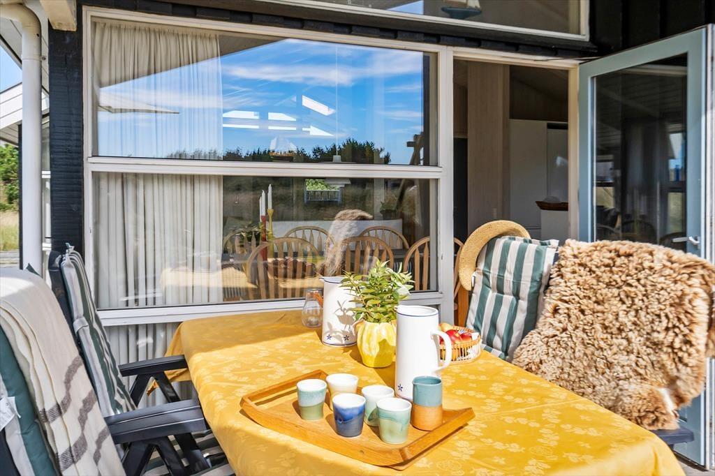 Et stort og dejligt terrassemiljø breder sig rundt om sommerhuset og hen til annekset, så du burde bestemt ikke få svært ved at finde en skøn siddeplads med sol og læ. En del af terrassen er endda godt afskærmet af et hegn, mens naturgrunden og det smukke, omgivende landskab sørger for, at du har noget kønt at kigge på, mens du drikker kaffe og nyder lyden af børnenes leg fra gyngestativet og sandkassen. Bilen kan du parkere i carporten – og hvis du også har medbragt en cykel eller har planer om at udforske Kettrup Bjerge til fods, kan bilen sikkert blive holdende en stor del af ferien.