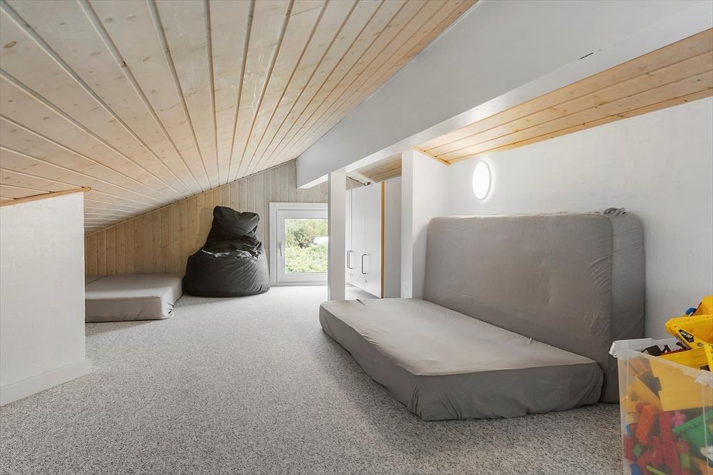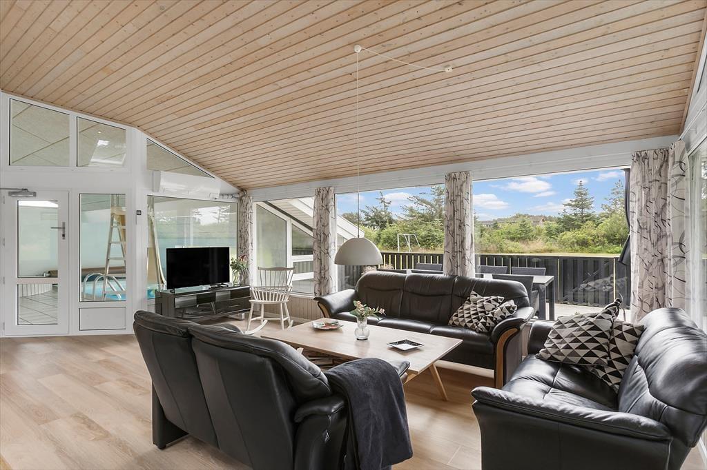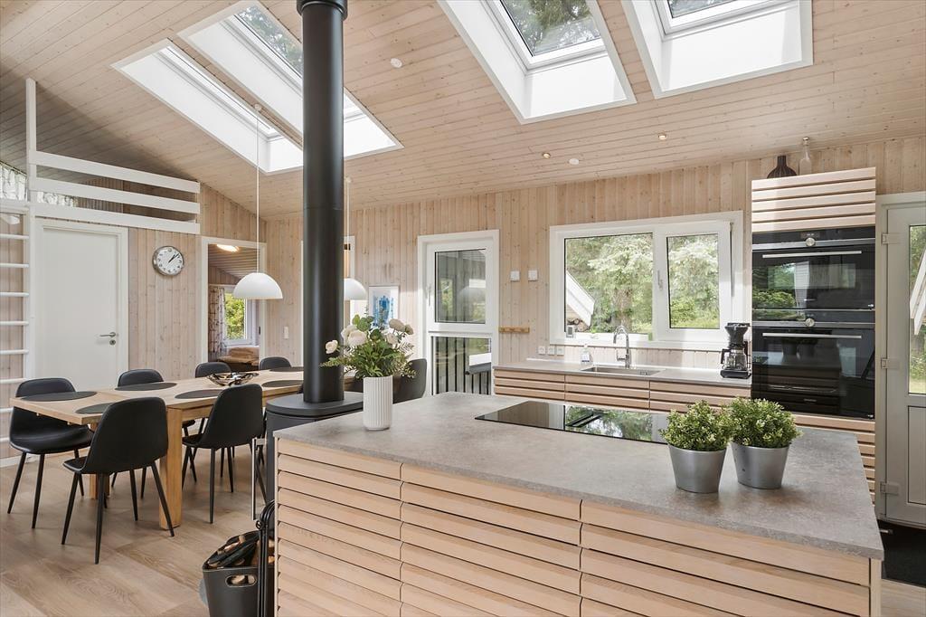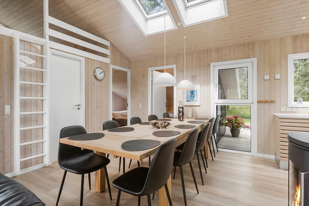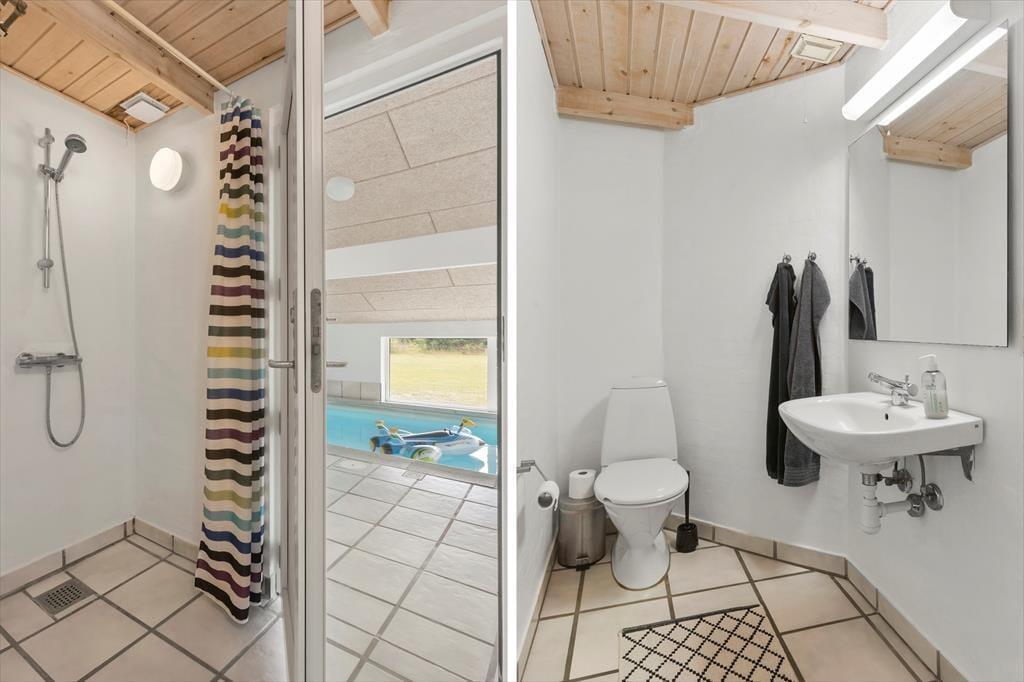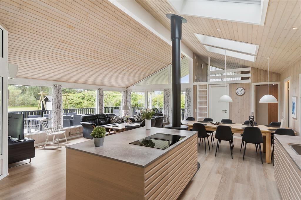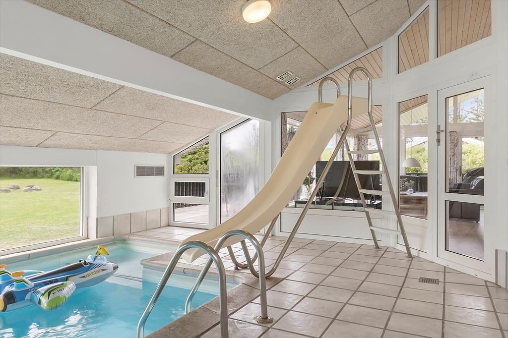 Når du træder ind i dette velindrettede sommerhus, bliver du mødt af en lys og indbydende atmosfære. Huset er nyrenoveret med flotte nye gulve og et moderne køkken, der indbyder til madlavning med lokale råvarer. Den rummelige opholdsstue med brændeovn skaber en hyggelig ramme om familiens samvær, og de store vinduer lader lyset strømme ind. Sommerhuset byder på fem gode soveværelser, to badeværelser hvoraf det ene har direkte adgang til en sauna – perfekt til afslapning efter en dag ved stranden. Og så er der naturligvis husets kronjuvel: en skøn, indendørs pool og spabad, som vil være et hit for både store og små.