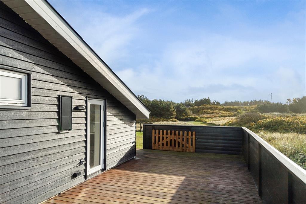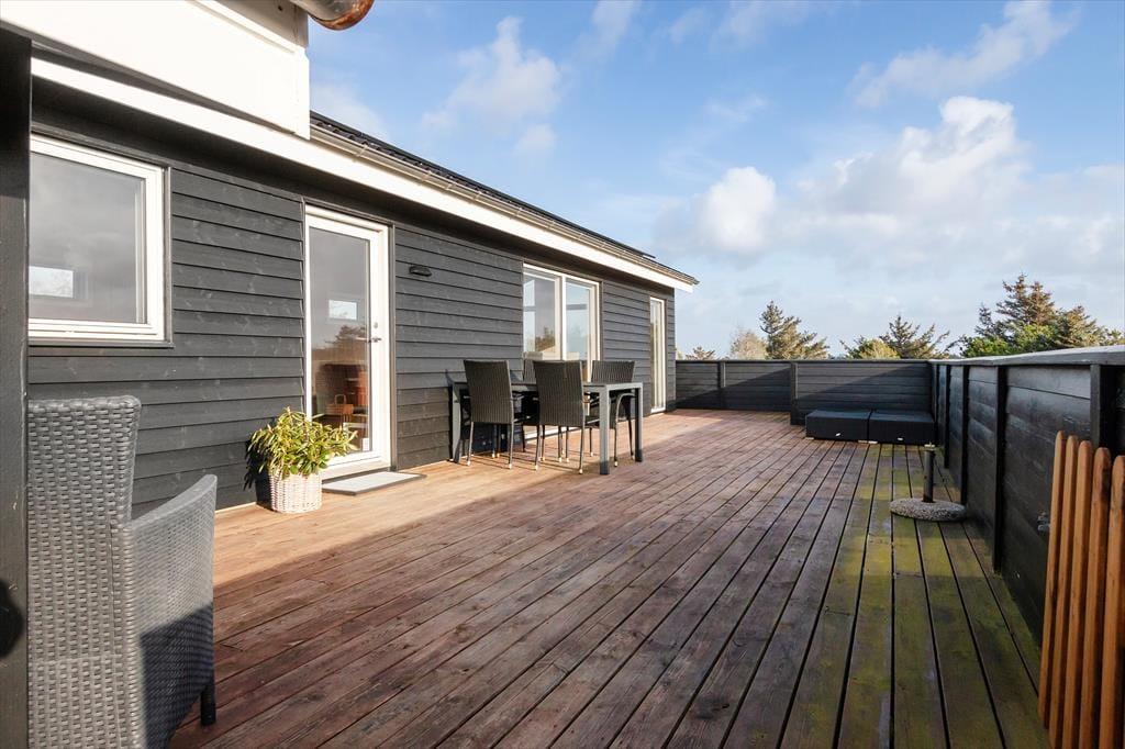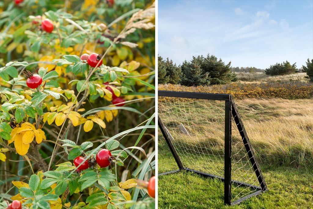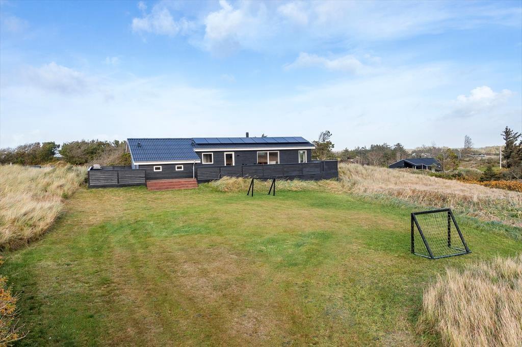 Udenfor venter en skøn, stor grund, hvor der er masser af plads til både leg og afslapning. Grunden indbyder til boldspil og udendørs aktiviteter, og de store terrasser rundt om huset gør det muligt at følge solens gang hele dagen. Du kan starte dagen med morgenkaffe på den ene terrasse, nyde frokosten i solen på den anden og slutte af med en lækker grillmiddag i den lune aftenluft, mens du lytter til naturens lyde omkring dig. Her er det nemt at komme ned i gear og lade roen sænke sig over ferien.