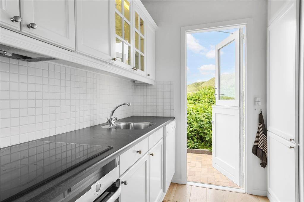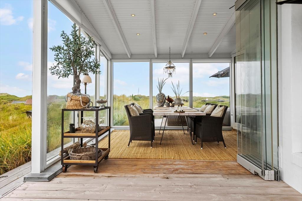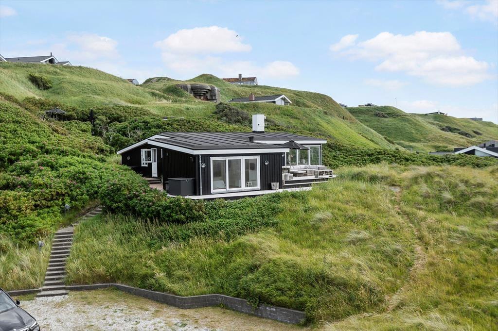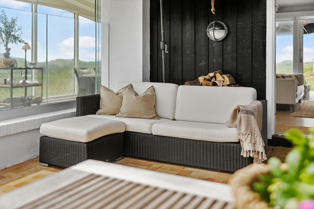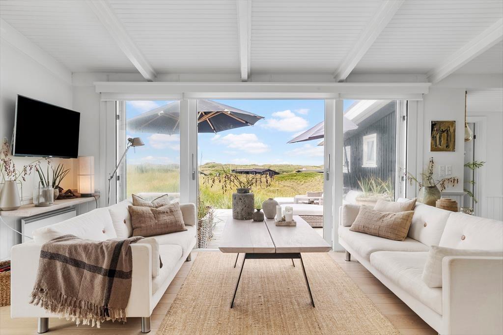 På sommerhusets store naturgrund kan du lade skuldrene sænke sig og nyde den friske havluft i fred og ro. Her venter både åbne og overdækkede terrasser, hvor du kan nyde morgenkaffen med havudsigten som bagtæppe eller finde læ for vinden med en god bog i hånden. Om aftenen kan I samles om grillen og nyde en god middag under den åbne himmel, mens solen dykker ned bag klitterne i horisonten. De kuperede omgivelser omkring Kettrup Bjerge giver oplevelsen af at være helt tæt på naturens egne former og farver – det er ikke usædvanligt at spotte harer eller fasaner på grunden, mens du nyder en stille stund på terrassen. Her er plads til både stille refleksion og fælles samvær – og lige præcis den type uforstyrrede ro, som feriedrømme er gjort af.