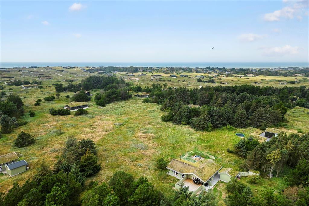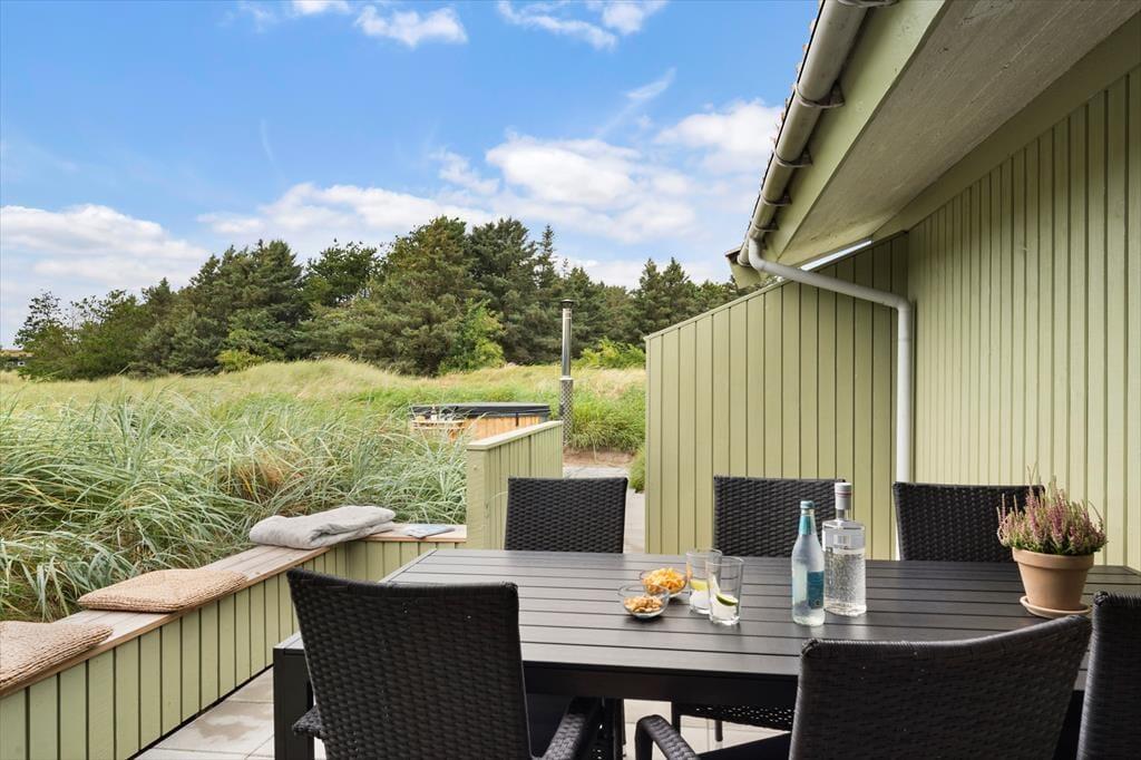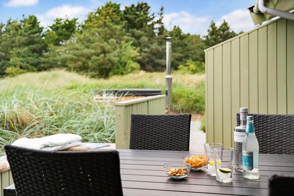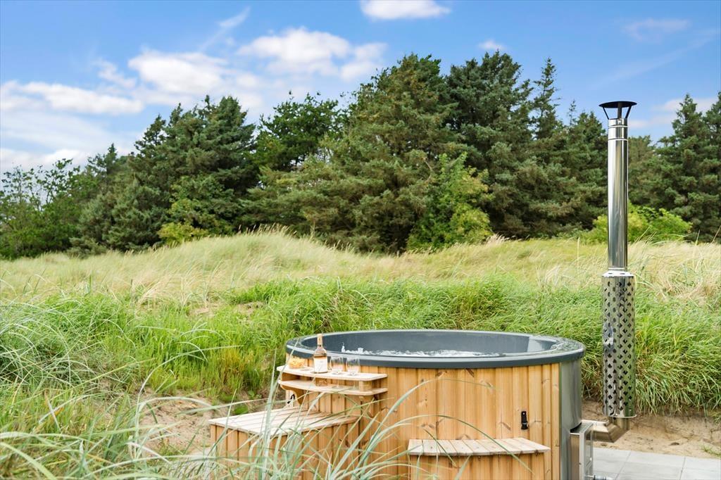 Udenfor kan du nyde flere terrasser med sol og skygge, en gasgrill til dejlige måltider samt et lunt vildmarksbad, hvor du kan slappe af og nyde udsigten. Området byder på afmærkede vandreruter, og du er tæt på både Løkken by og smukke strande som Grønhoj. Her kombineres ro, komfort og aktiviteter i smukke omgivelser.