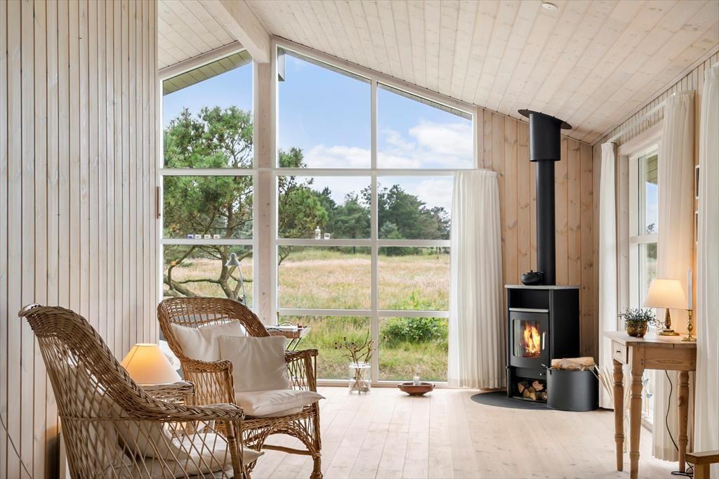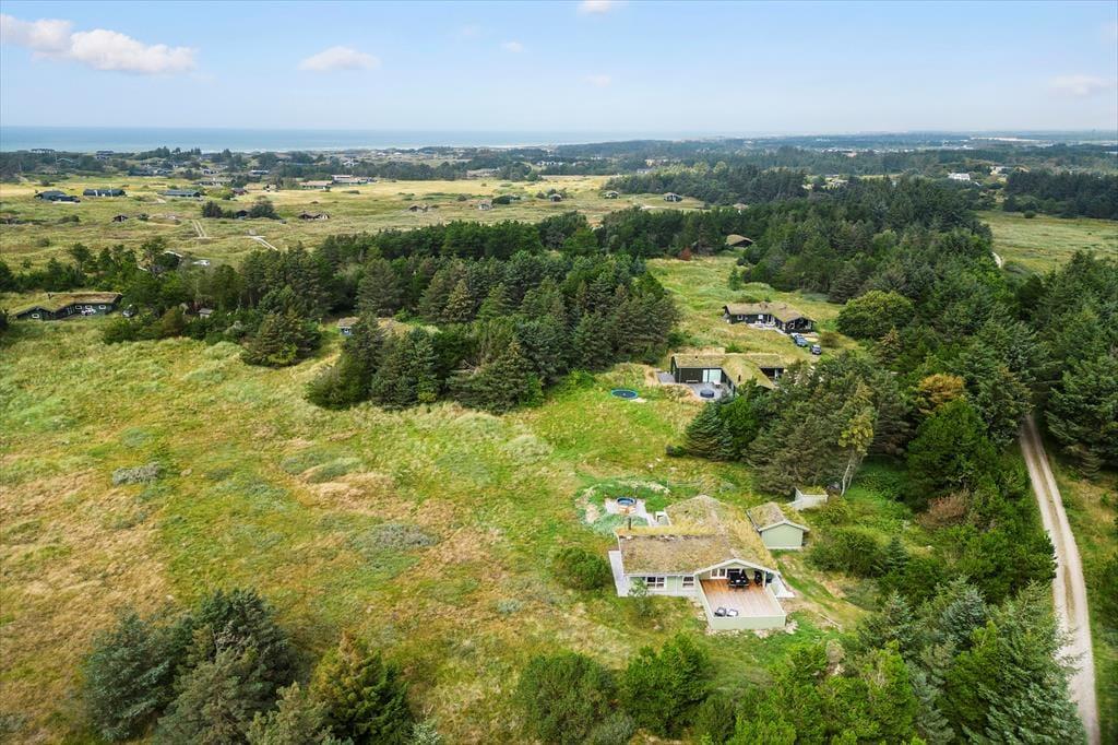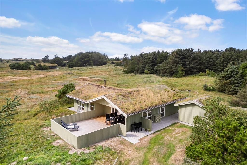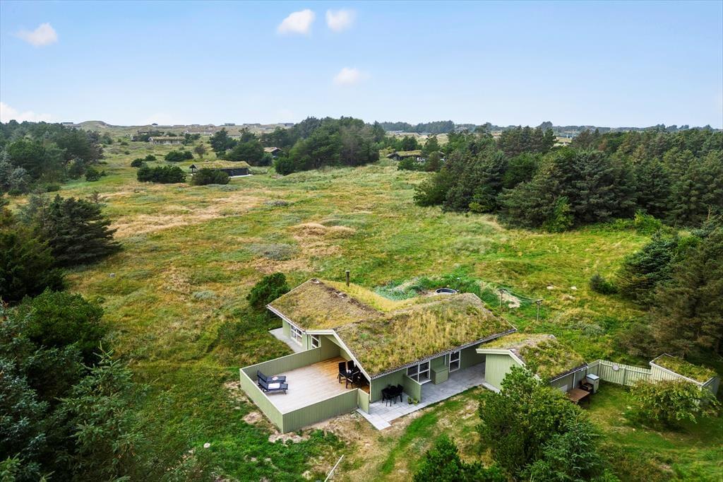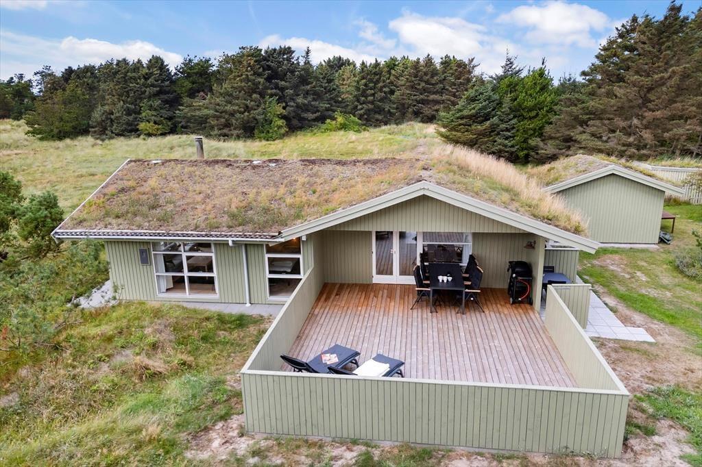 Udenfor kan du nyde flere terrasser med sol og skygge, en gasgrill til dejlige måltider samt et lunt vildmarksbad, hvor du kan slappe af og nyde udsigten. Området byder på afmærkede vandreruter, og du er tæt på både Løkken by og smukke strande som Grønhoj. Her kombineres ro, komfort og aktiviteter i smukke omgivelser.