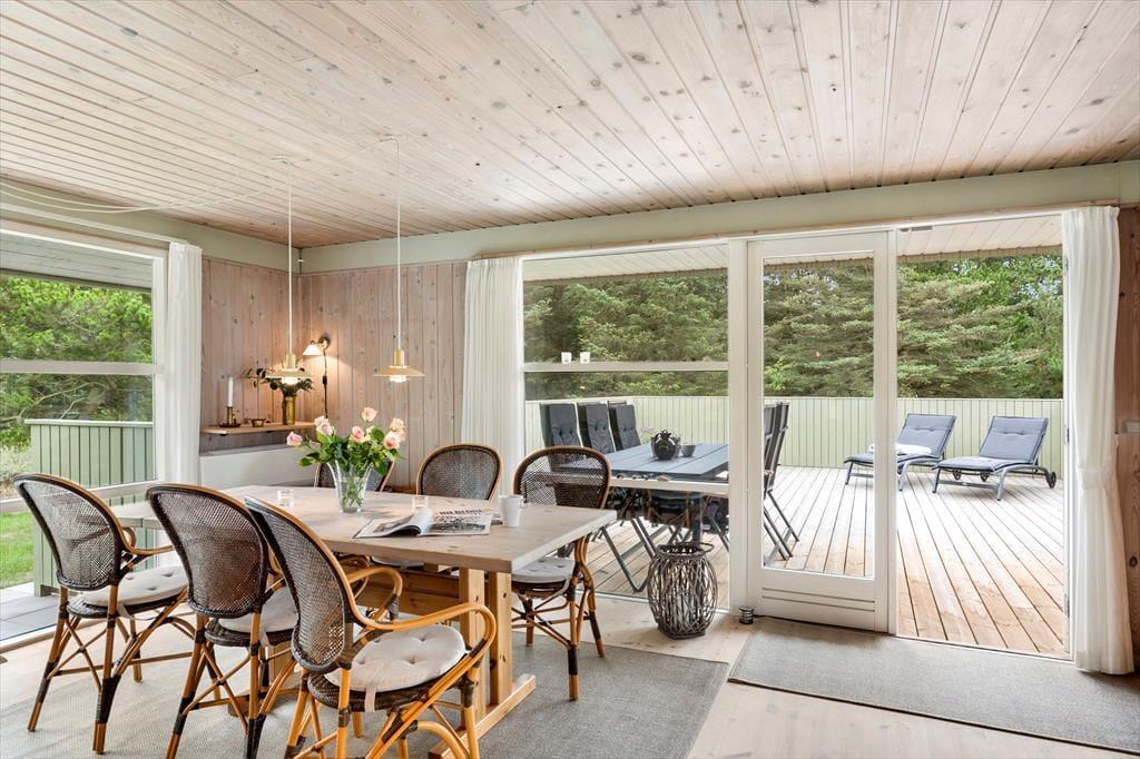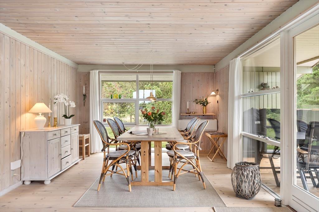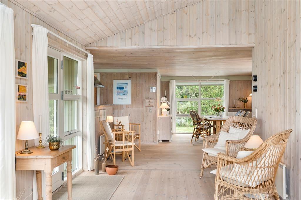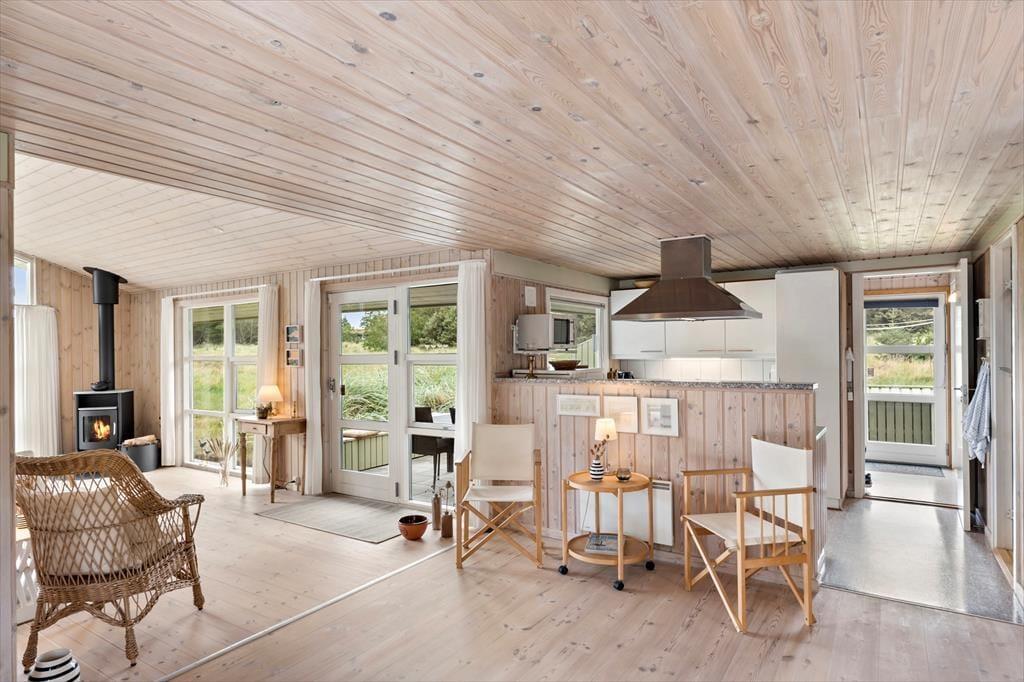 Dette charmerende sommerhus på Sarasvej 48 i Kettrup Bjerge tilbyder en fredelig base midt i et naturskønt og kuperet landskab. Huset er lyst og rummeligt med store vinduer, der inviterer naturen indenfor og skaber en indbydende atmosfære. Det åbne køkken og stueområde er perfekt til hyggelige stunder med familie og venner.
