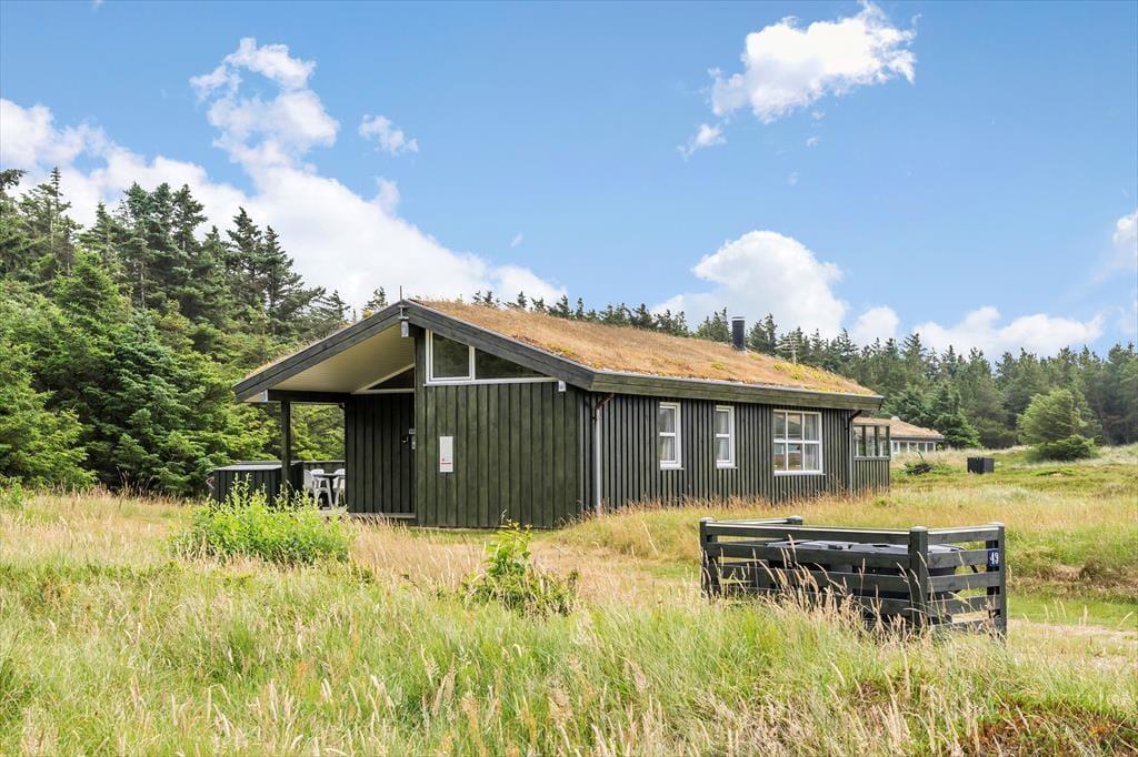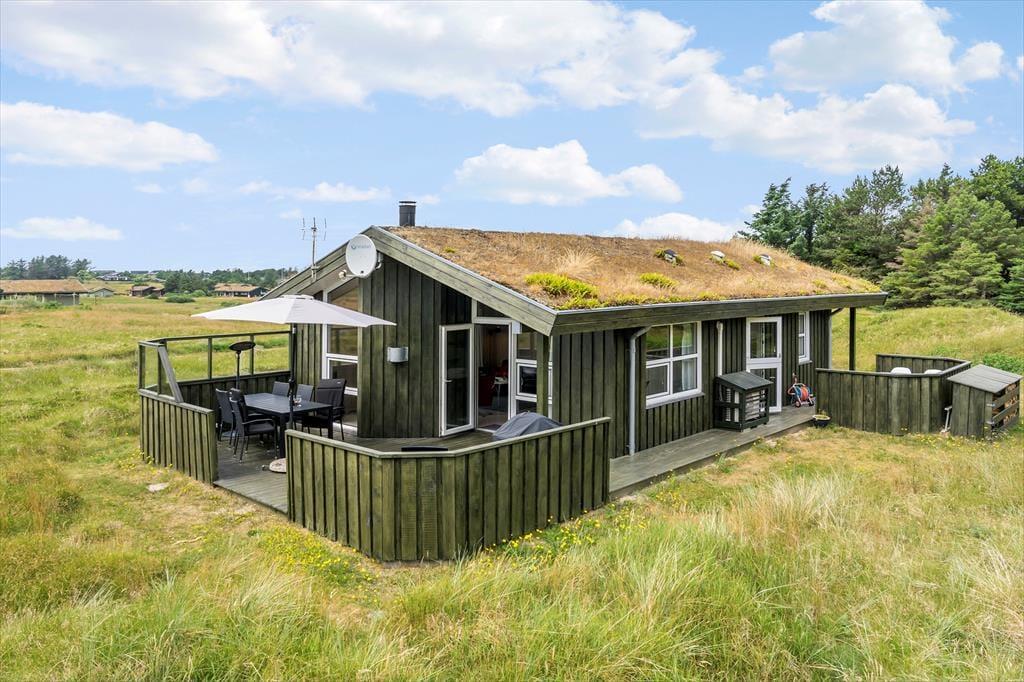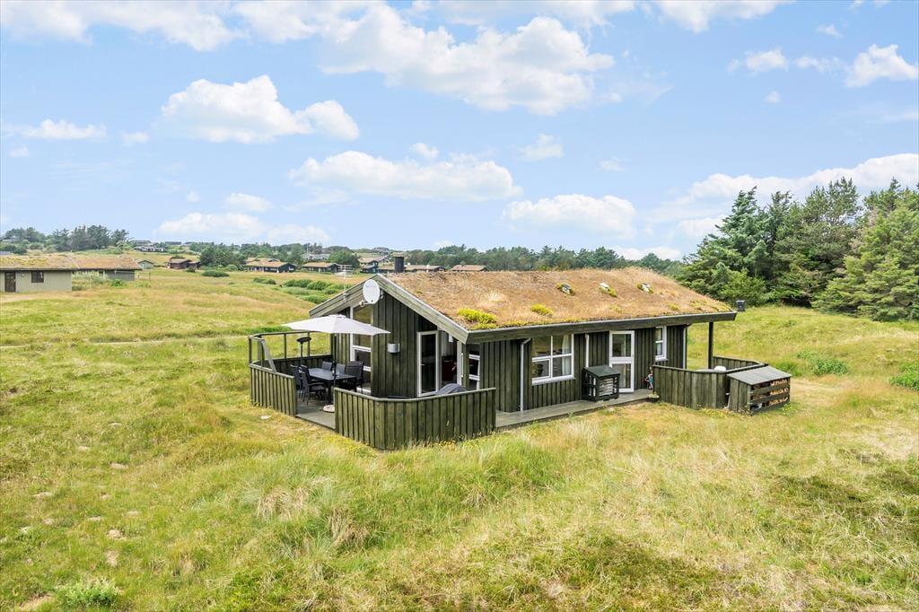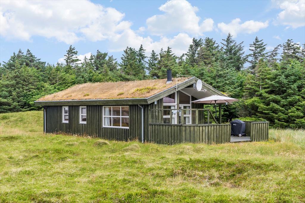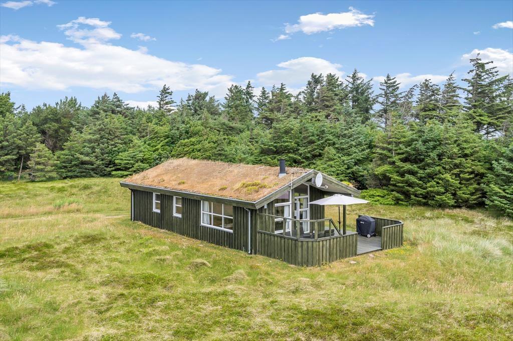 Sommerhuset er omgivet af et skønt terrasseareal. Mod syd ligger en delvis overdækket terrasse, som fortsætter på den ene side af sommerhuset hen mod indgangen. Det flotte lyngklædte landskab omkranser terrassen, hvilket giver mulighed for at kunne se dyrelivet helt tæt på.
