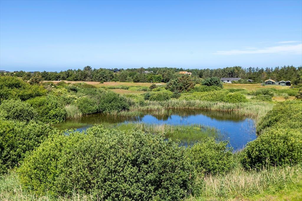 Dette meget velholdte feriehus har en dejlig varm og hyggelig atmosfære. Her er alle faciliteter til at skabe en vellykket og afslappende ferie; trådløst internet, brændeovn, gode hårde hvidevarer og derudover er det ene badeværelse udstyret med spabad og sauna, som gør at man kan koble helt af efter en lang dag ved stranden eller på tur rundt i dette naturskønne område. Huset råder over et godt og åbent køkken-alrum, stue, 2 badeværelser og fire soverum. Fra stuen er der en skøn udsigt over landskabet, og på grunden er der en lille idyllisk sø, som kan ses fra huset, og her kan opleves et rigt dyre og fugleliv. Huset indbyder virkelig til kvalitetstid og mange hyggelige stunder for hele familien.