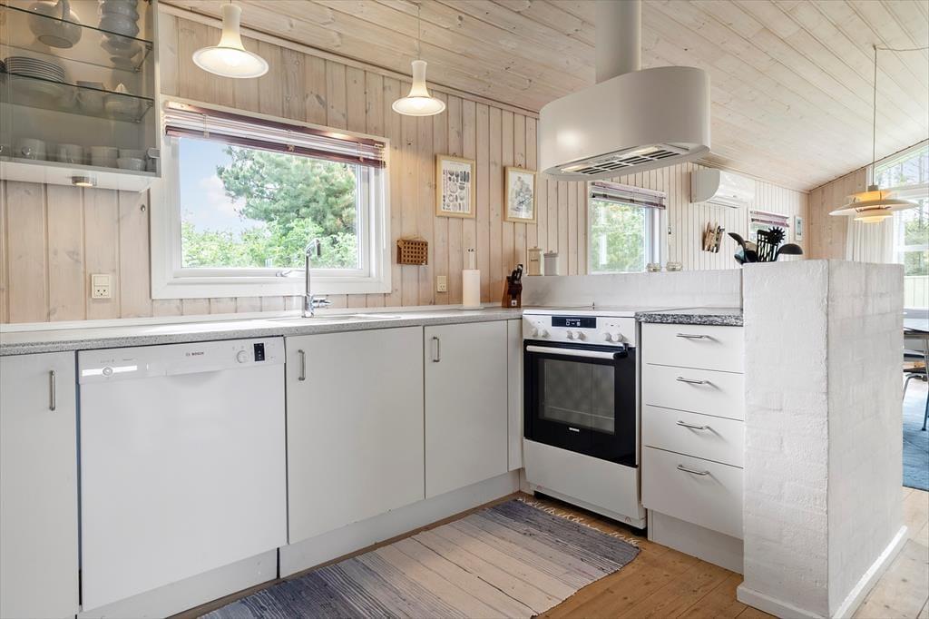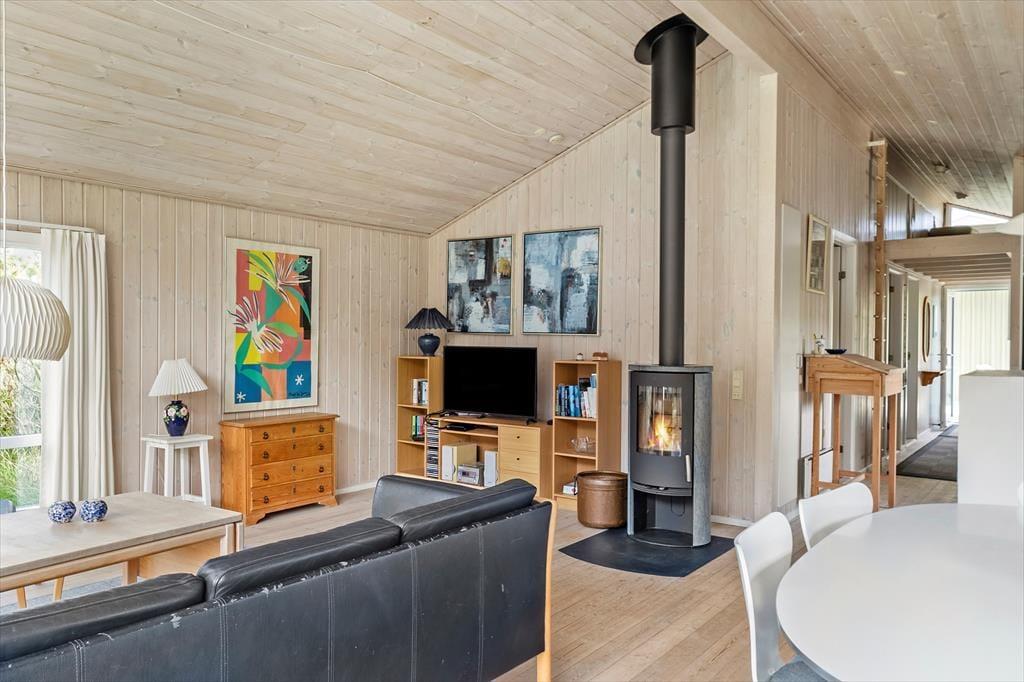 Sommerhuset er lyst og hyggeligt indrettet med fine og brugbare møbler, de nødvendige hårde hvidevarer, brændeovn og gratis og trådløst internet. De tre værelser og badeværelset med bruser, sauna og vaskemaskine ligger langs entreen, mens køkken og stue er placeret samlet i den sydlige del af huset; en praktisk opdeling, hvis man har mindre børn med på ferien, som stadig skal puttes tidligt. Man kan være op til fem overnattende personer i sommerhuset, så det er velegnet til både en familie og parferie, og i de hyggelige og anvendelige omgivelser er man sikker på at få en afslappende og minderig ferieoplevelse i Nordjylland.
