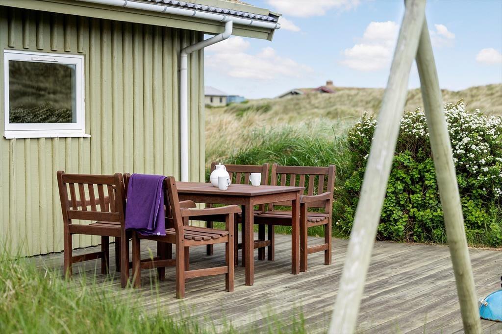 Mellem sommerhuset og garagen ligger en dejlig aflukket solgård, hvor der altid er læ, og hvor man virkelig kan få slappet godt af. Mod øst ligger en terrasse med morgensol, og foran huset er en god, lukket terrasse, så der er alle muligheder for at nyde udendørslivet i fulde drag.