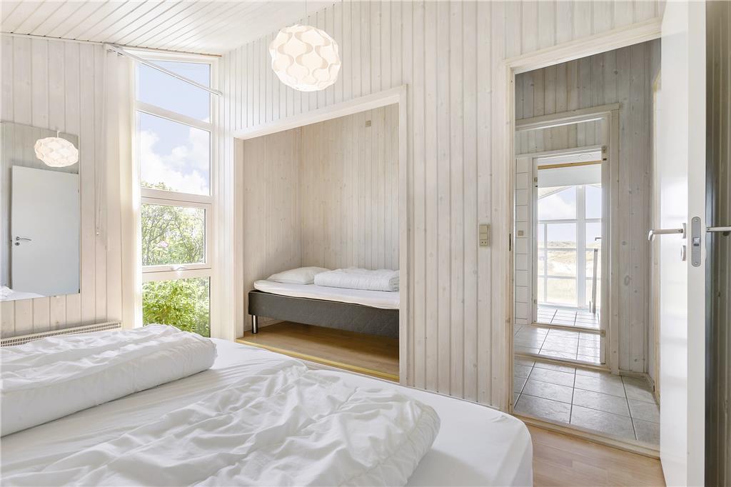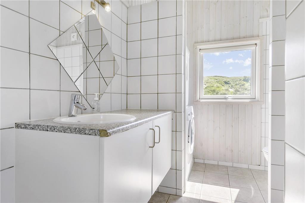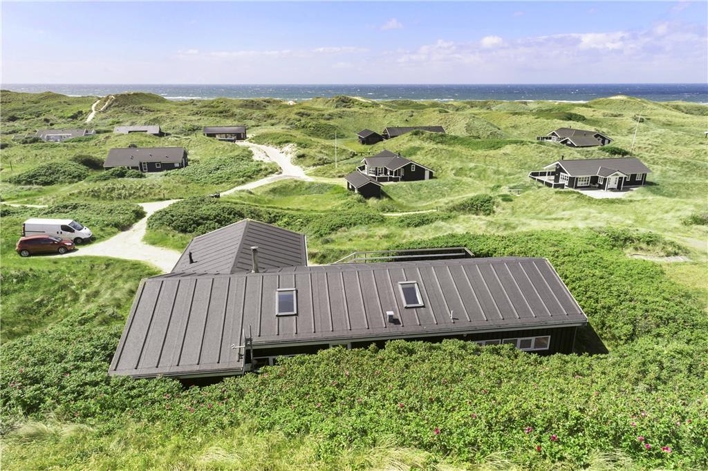 Dette hus skiller sig positivt ud fra mængden med sin store dejlige terrasse, som løber på tre sider af huset og er omgivet af områdets skønne klitlandskab. Her er naturligvis både havemøbler og liggestole, så man er sikker på at kunne nyde sommerlivet maksimalt.