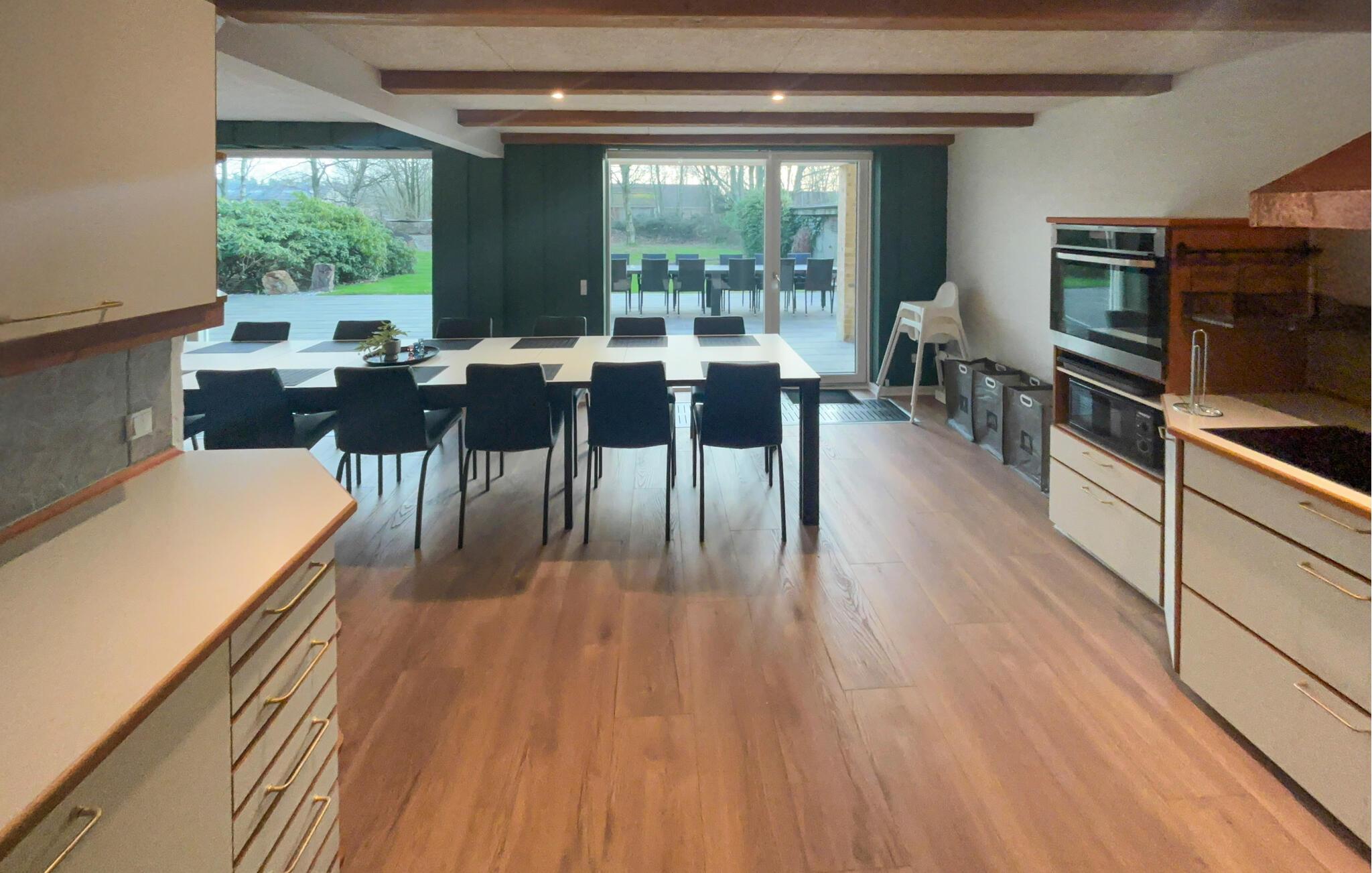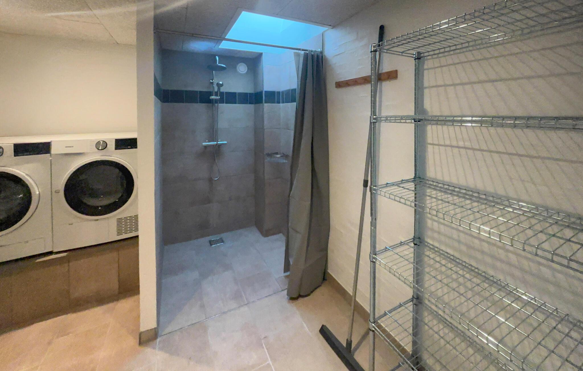 Gå ud på den store terrasse, og tag plads ved det lange bord til morgenmad eller aftensmad under åben himmel. Nyd udsigten over den velplejede græsplæne, og brug den overdækkede del af udestuen til rolige stunder, også når vejret ikke viser sig fra sin bedste side. Åbn adgangen til udendørsspabadet, og slut dagen af i det varme vand.