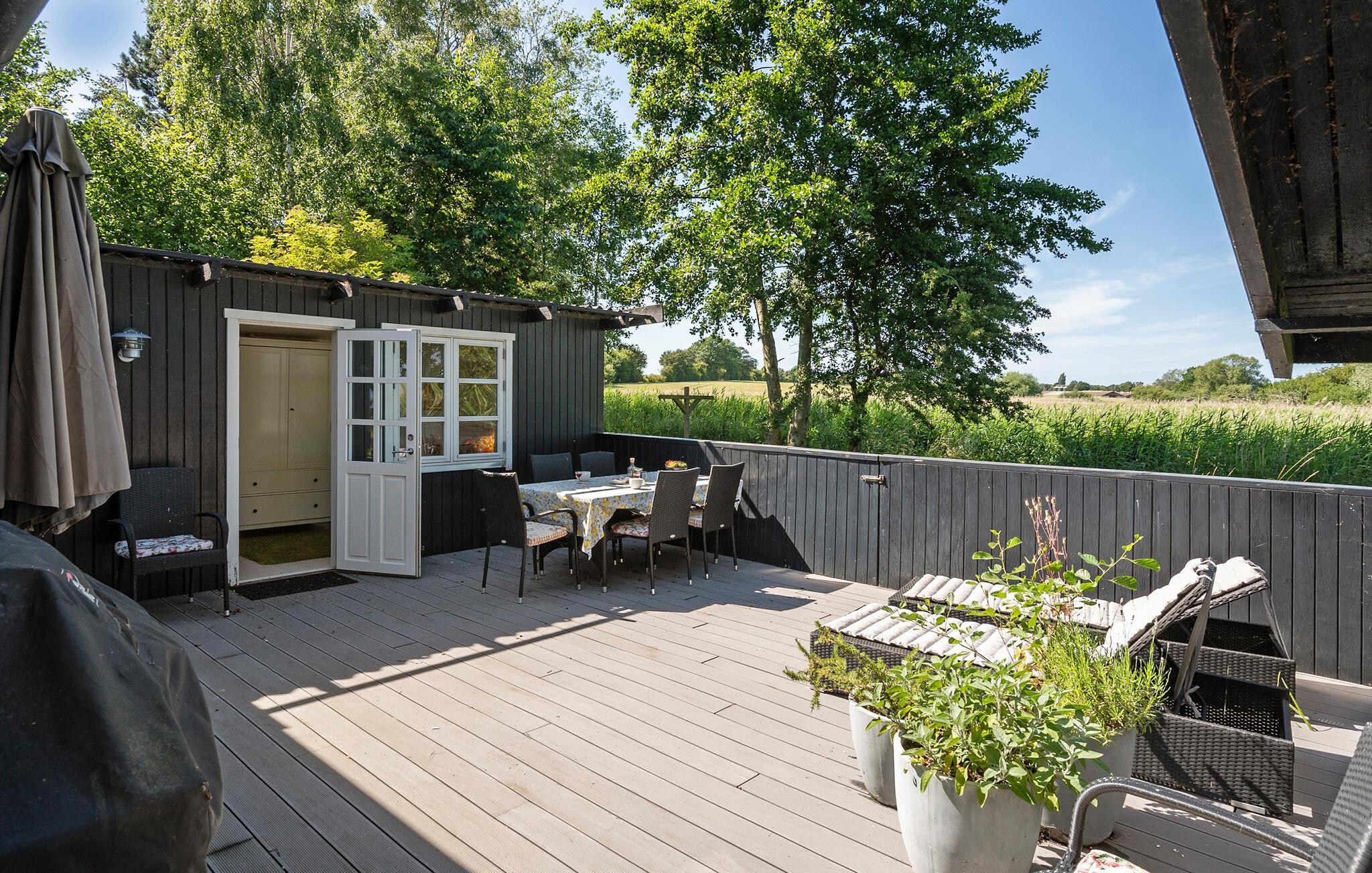 Komfortabelt feriehus nær havet med moderne faciliteter og dejlig terrasse til afslapning.