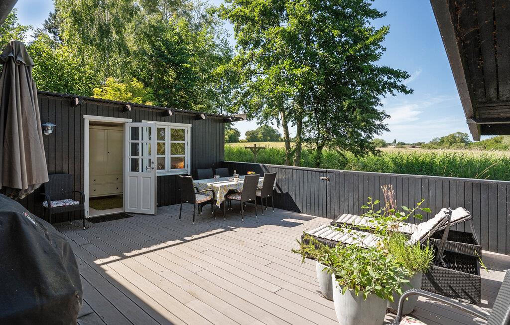 Når solen er fremme, er terrassen det ideelle sted til en dejlig morgenmad udendørs. Lad batterierne op i de behagelige liggestole, mens børnene leger på græsplænen.