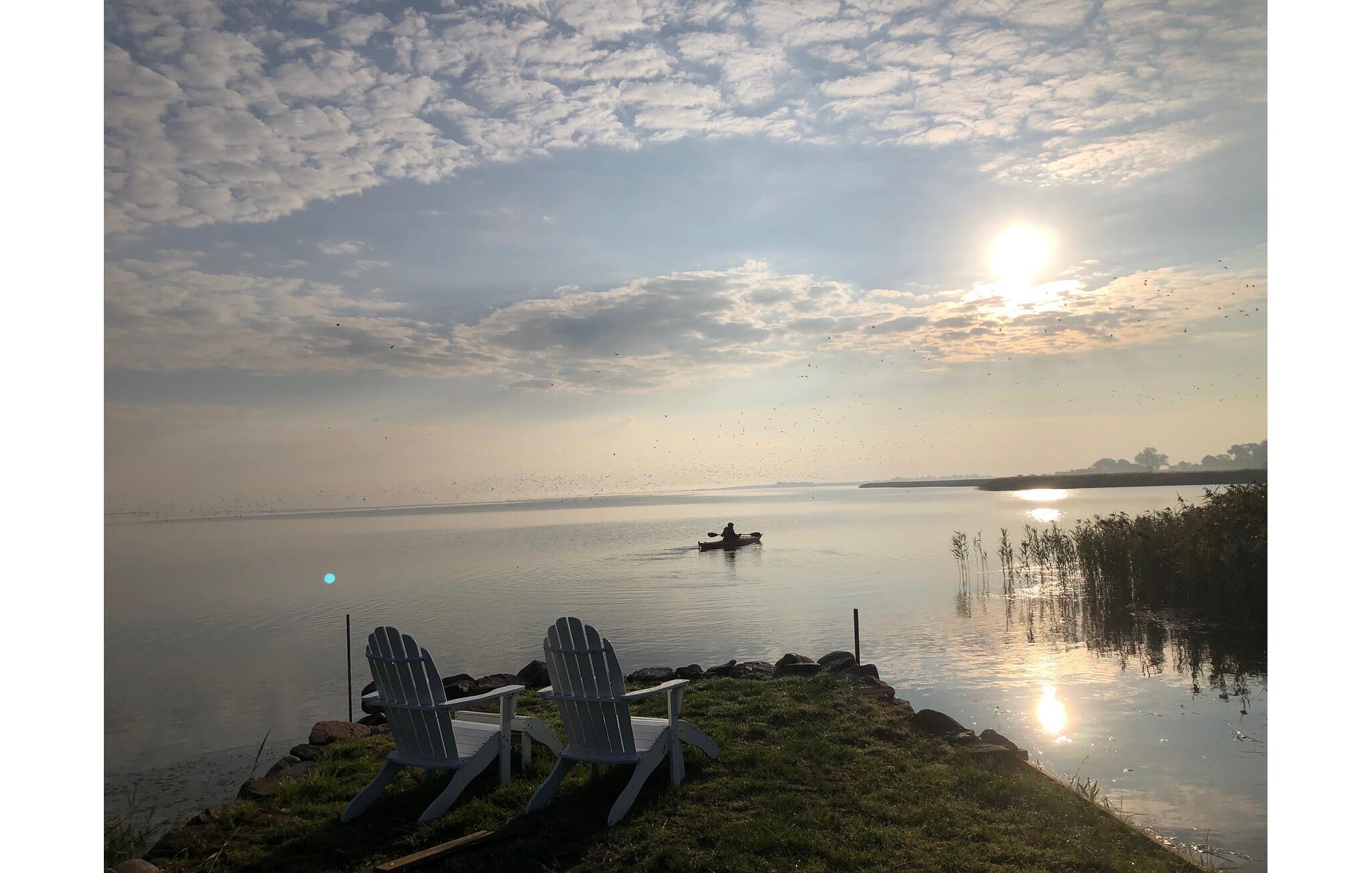 Den store grund og de to terrasser med træhavemøbler, komfortable liggestole og gasgrill, inviterer jer til at tilbringe mange behagelige timer udendørs. Nyd freden og solen herude. Grunden går helt ned til vandet, hvor frokosten kan nydes, og der er mulighed for at bade. Fra både stuen og terrassen er der 180 graders udsigt over Stege bugt.