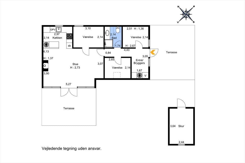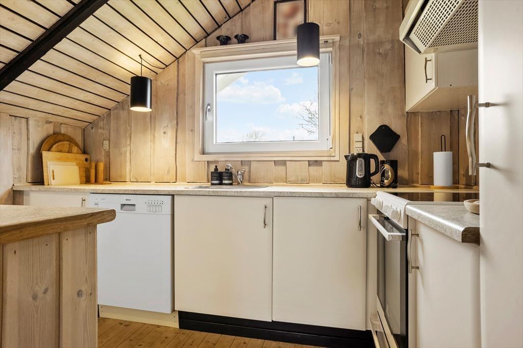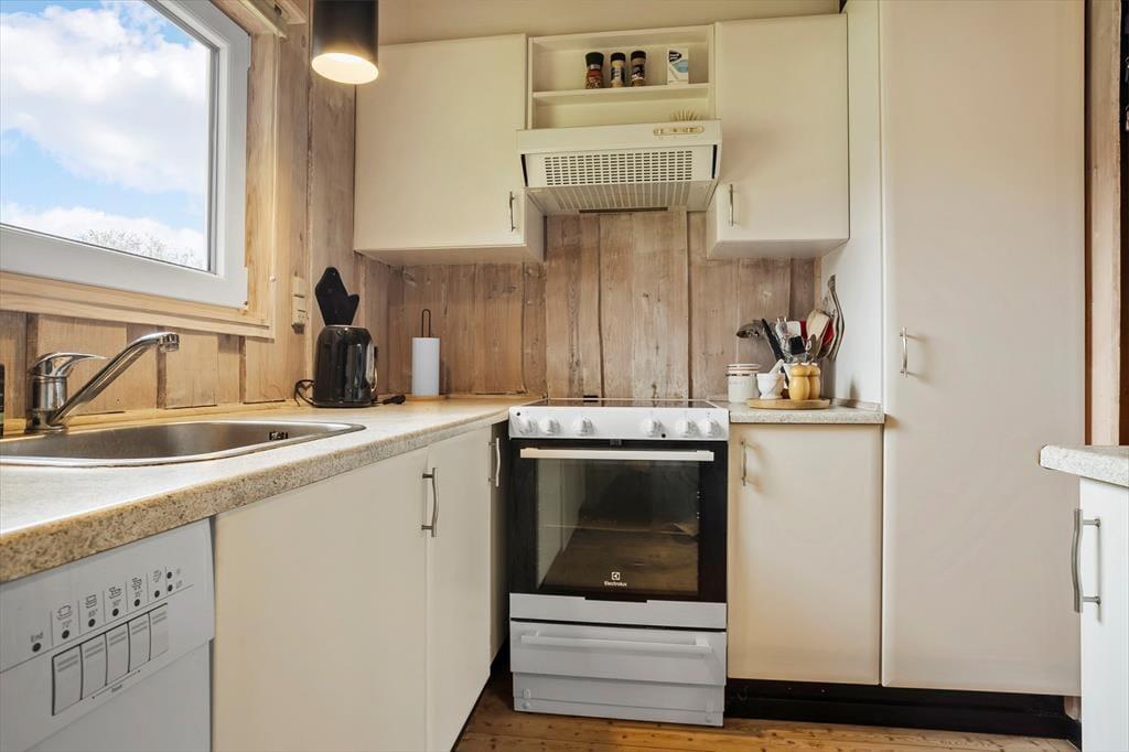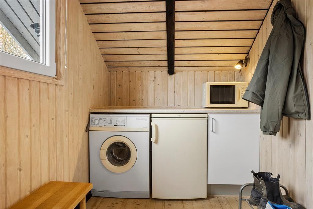 Sommerhus i Kjærgaarden, Nordjylland, med plads til 6 voksne. Der er en hyggelig indretning med bl.a. brændeovn, og du finder desuden vaskemaskine og opvaskemaskine i boligen.