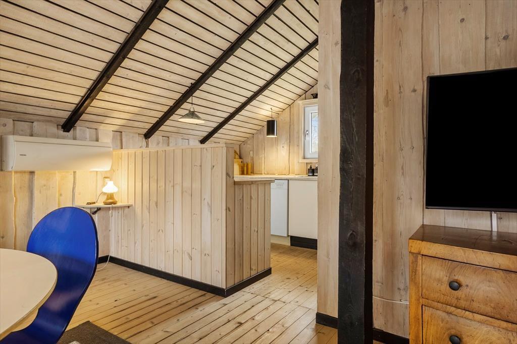 Hyggeligt sommerhus i Kjærgaarden med brændeovn og internet, kun 400 meter fra stranden.