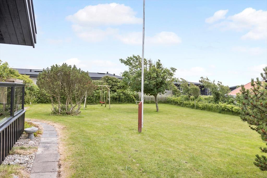 Kjærgaarden er kendt som et hyggeligt og roligt sommerhusområde, der gør det til et oplagt feriemål, når der virkelig skal slappes af. Der er petanquebane og legeplads i kvarteret, og vejene er lukkede – også Hellesvej, hvor netop dette sommerhus ligger i tredje række til strandengen. Vil I ned til Limfjorden for at bade eller bare nyde udsigten, kan I følge stien, der fører jer den korte tur dertil. Får I lyst til at se Vesterhavet, tager det ikke mange minutter at køre til kystbyen Agger, og er det vild natur og åbne vidder, der trækker, har I masser af gode oplevelser i vente i den nærliggende Nationalpark Thy.