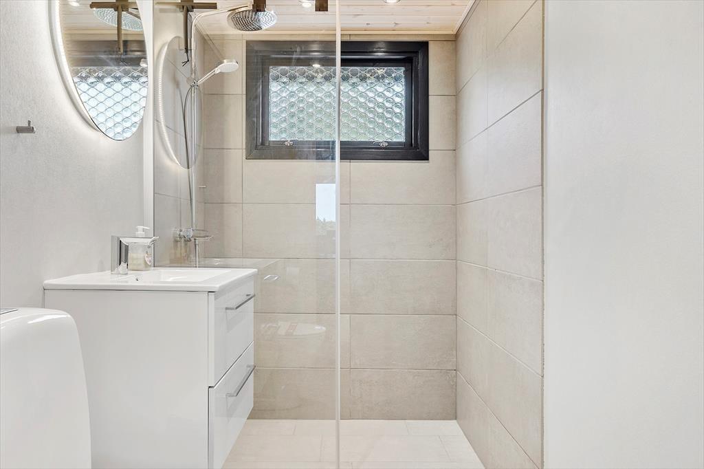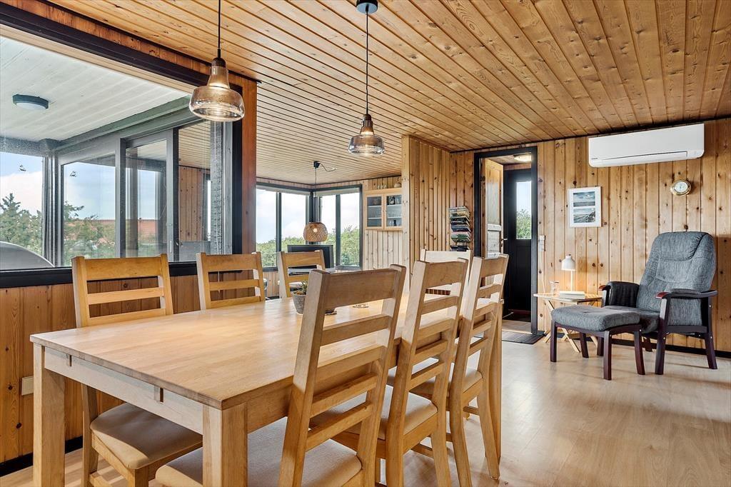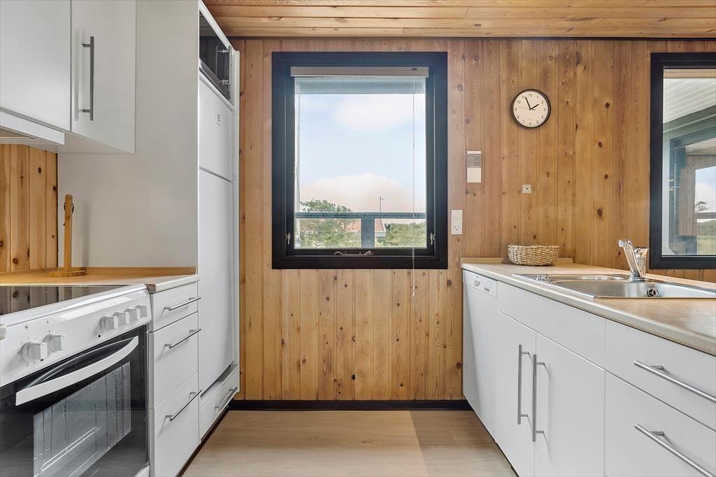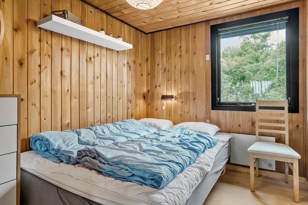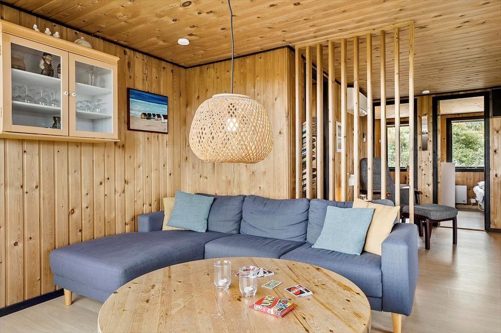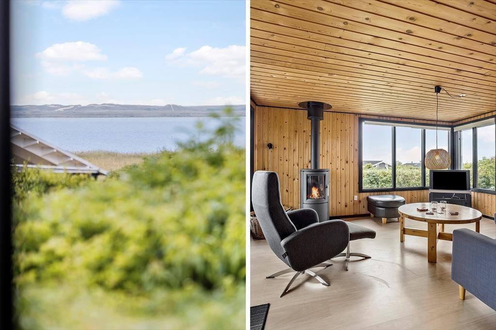 Husets indre fremstår pænt og velholdt efter en renovering i 2021, hvor der også er kommet nyt interiør i huset. De rustikke trælister på vægge og lofter bidrager til rummenes gennemførte sommerhusatmosfære, og stuens brændeovn skaber en ekstra hyggelig stemning. Og så bliver det hele blot endnu skønnere af, at I kan nyde udsigten til Limfjorden, selv når I slapper af inden døre. Foruden stuen, der ligger i åben forbindelse med et pænt køkken, byder sommerhuset på en udestue, et badeværelse med bruser og tre soveværelser, der alle er indrettet med dobbeltsenge.
