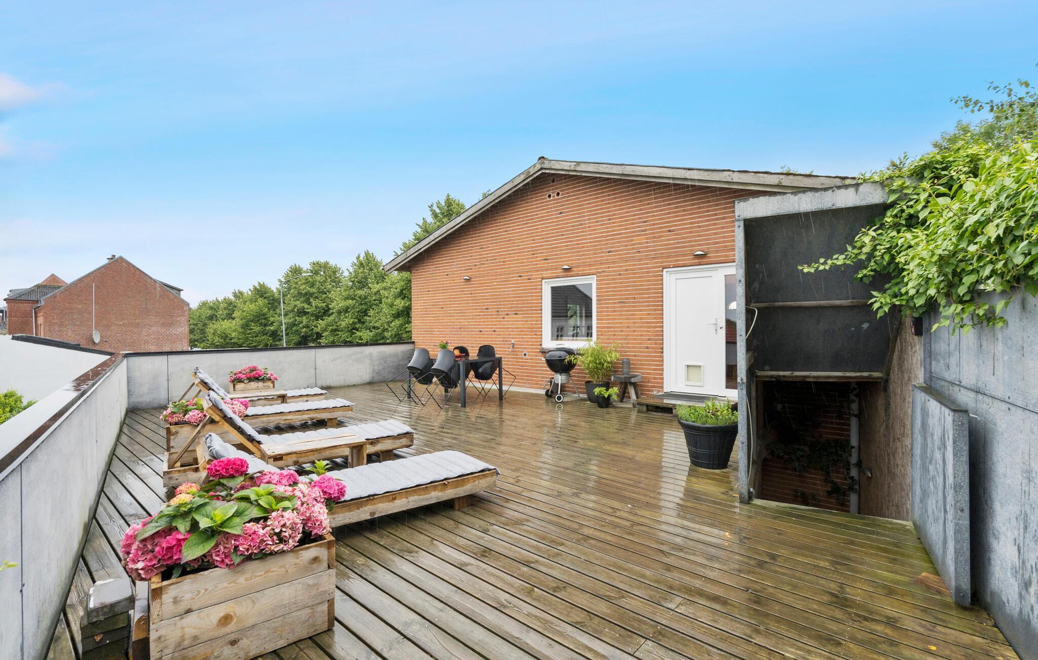 I kan læne jer tilbage på en stor tagterrasse, når solen er fremme. Her kan I blive ét med de rolige omgivelser og fylde de stille dage med solbadning, grillretter og afslappende ferieøjeblikke. Glæd jer til denne lille oase, som bliver rammen om en skøn ferie i det midtjyske!