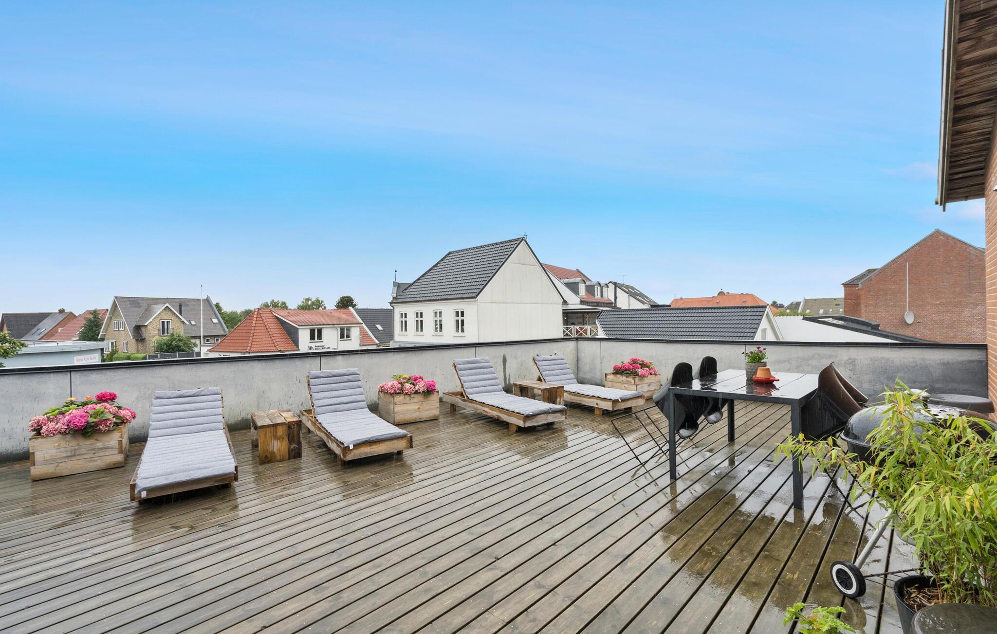 Smart og indbydende ferielejlighed med stor tagterrasse.