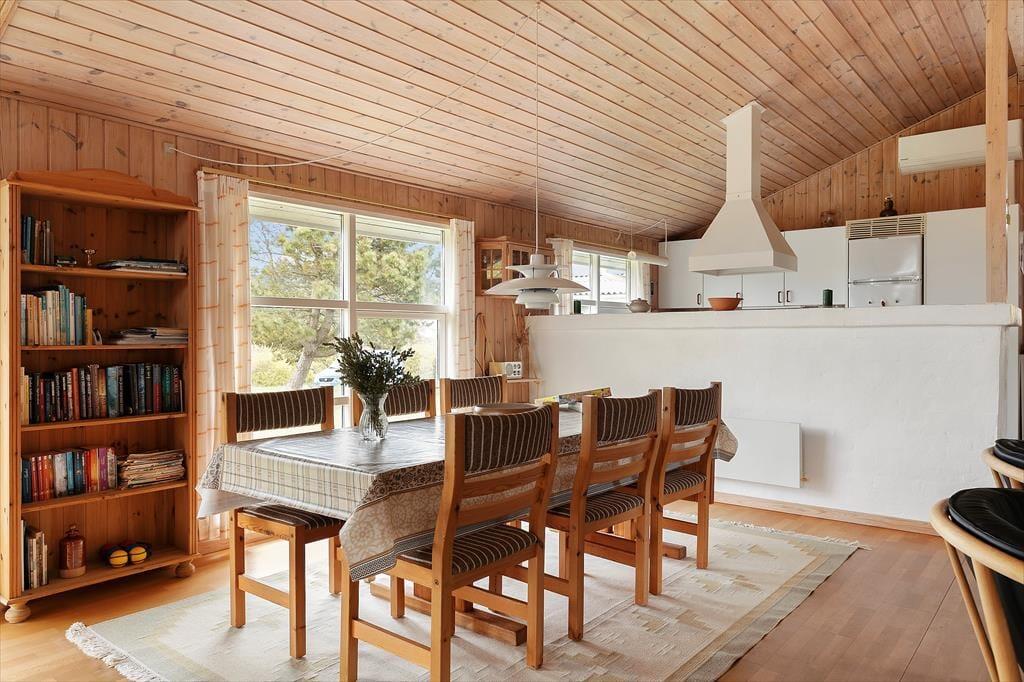 Sommerhus i Kjul Strand, Nordjylland, med plads til 6 voksne. Der er en hyggelig indretning med bl.a. brændeovn, og du finder desuden vaskemaskine og opvaskemaskine i boligen.