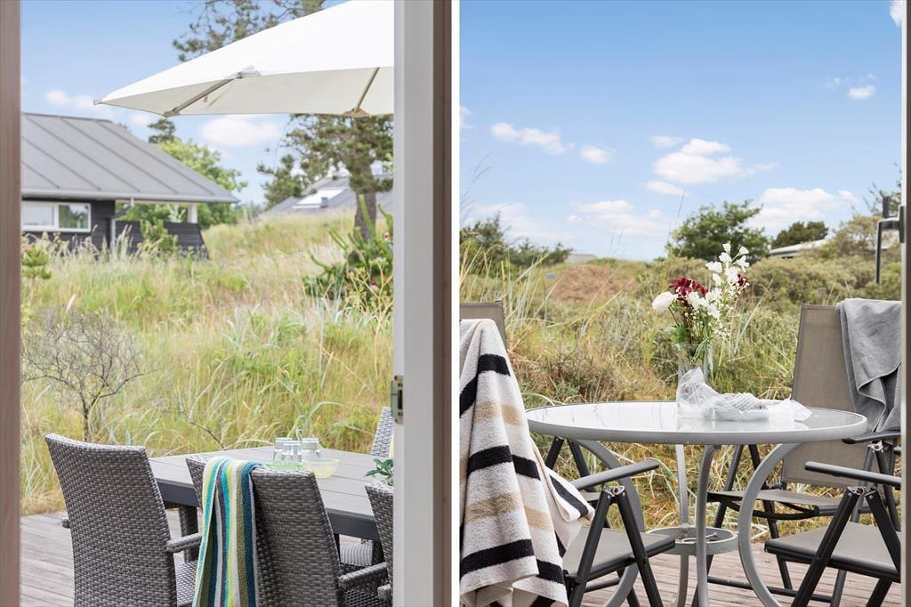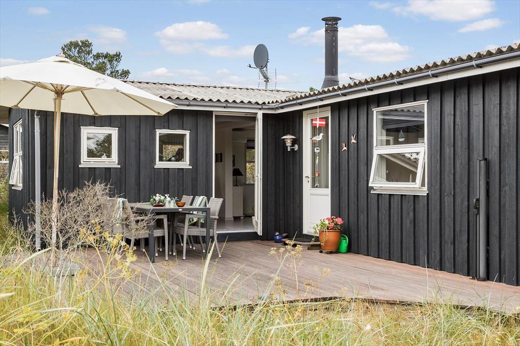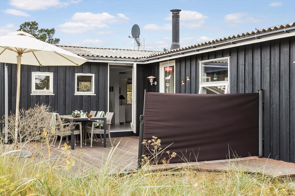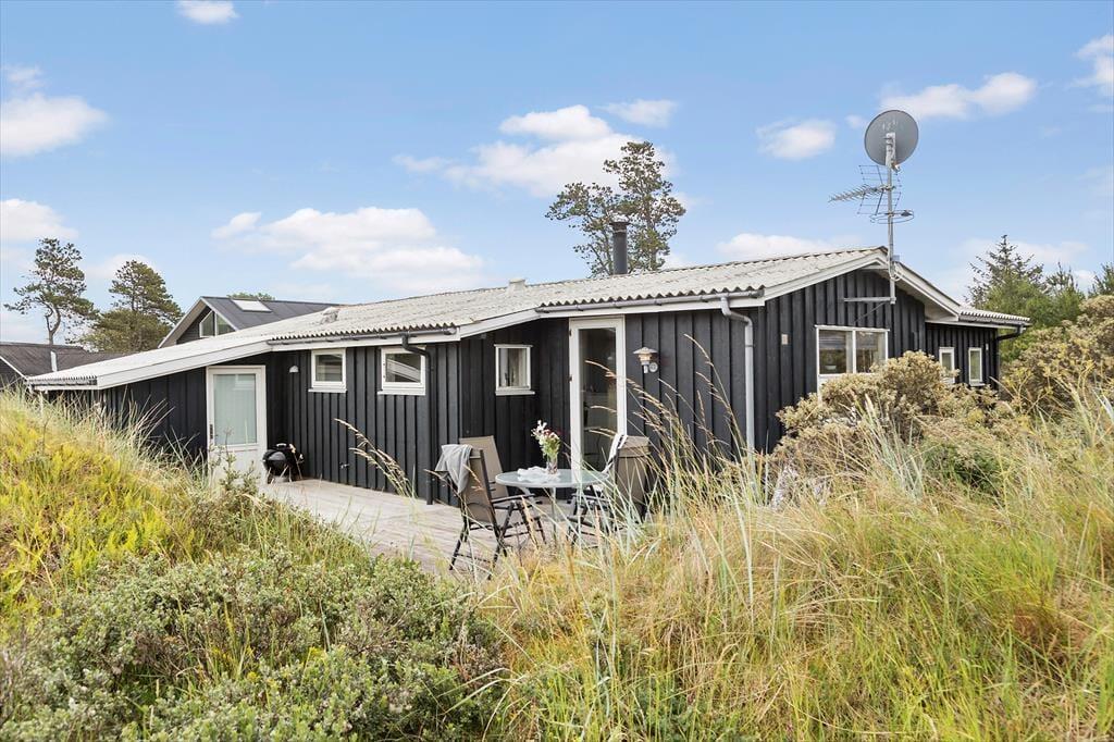 Hvis du længes efter en ferie med fred, frisk luft og nem adgang til det brusende Vesterhav, er dette hyggelige sommerhus i Kjul et oplagt valg. Her får du en lys og venlig atmosfære, gode terrasseområder og en naturgrund med udsigt til klitterne – og omgivelserne er så rolige, at du kan nyde fuglesang og måske endda spotte rådyr i det fjerne.