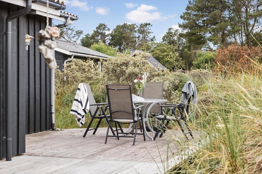 Sommerhuset byder på flere skønne terrasseområder, hvor du kan følge solen hele dagen. Start morgenen med kaffe på den østvendte terrasse, mærk varmen på kinderne midt på dagen og slut af med aftensmad under åben himmel, mens dagens sidste solstråler rammer klitlandskabet. Naturgrunden er rig på dyreliv, og her er masser af plads til, at børnene kan lege frit, mens de voksne nyder roen og udsigten. Det er oplagt at tage en frisk gåtur direkte fra huset ned mod stranden, hvor vinden fra havet og lyden af bølgerne hurtigt minder dig om, hvorfor Kjul er et helt særligt sted at holde ferie.
