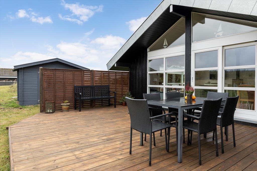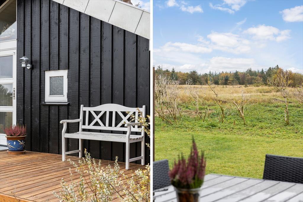 På den store naturgrund omkring huset er der masser af plads til at nyde ferielivet under åben himmel. En del af grunden er udlagt med plæne, så her kan børn og voksne spille bold, lege eller læne sig tilbage i liggestolen og nyde solen. De dejlige terrasseområder giver jer mulighed for at følge solens bane hele dagen – fra morgenkaffen på den ene terrasse til aftensmaden på den anden, mens aftensolen langsomt forsvinder bag trætoppene. Herude kan I virkelig mærke roen sænke sig og fornemme, hvor tæt I er på naturen – og måske endda spotte et rådyr, der forsigtigt bevæger sig gennem det grønne landskab.