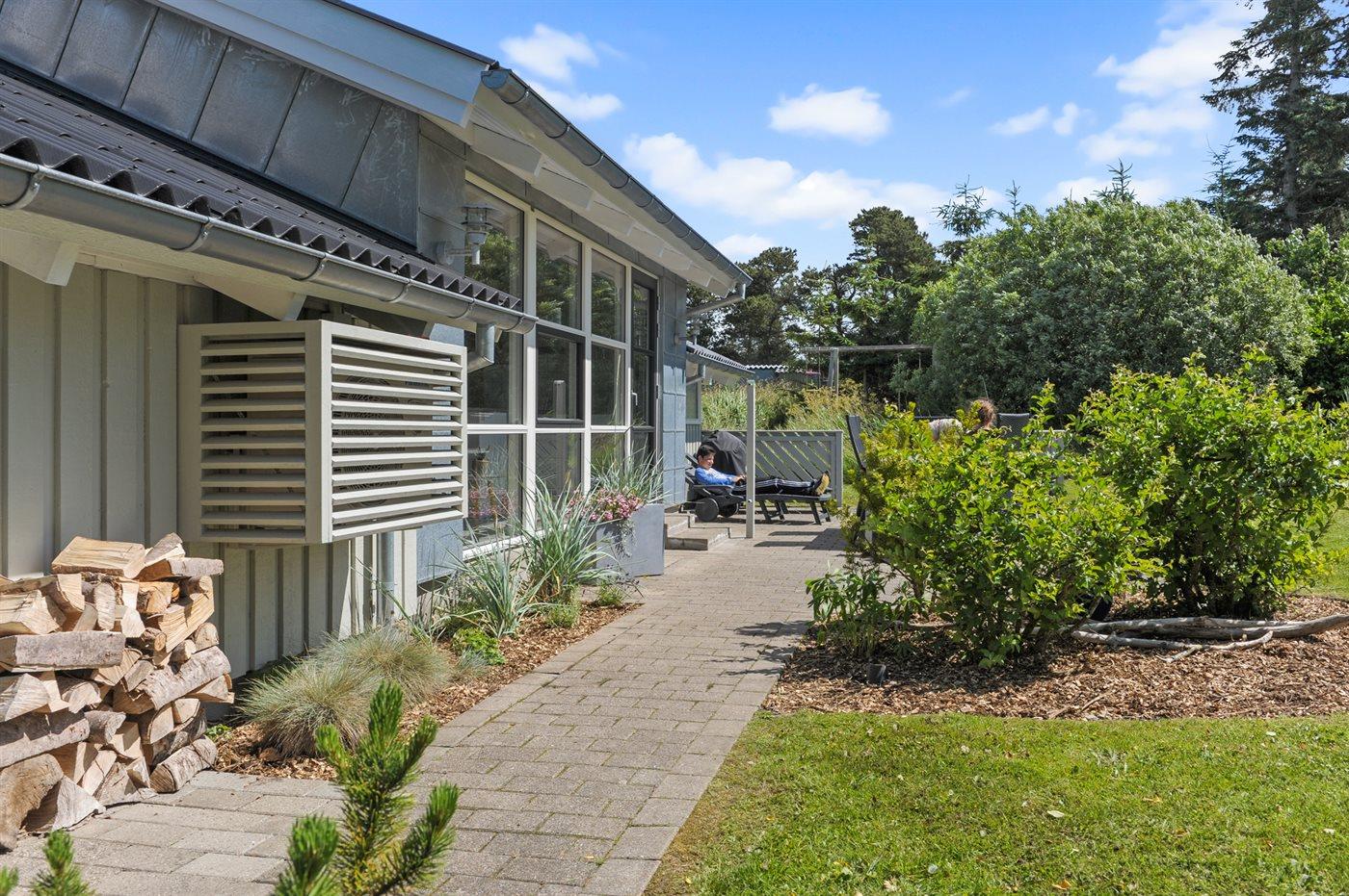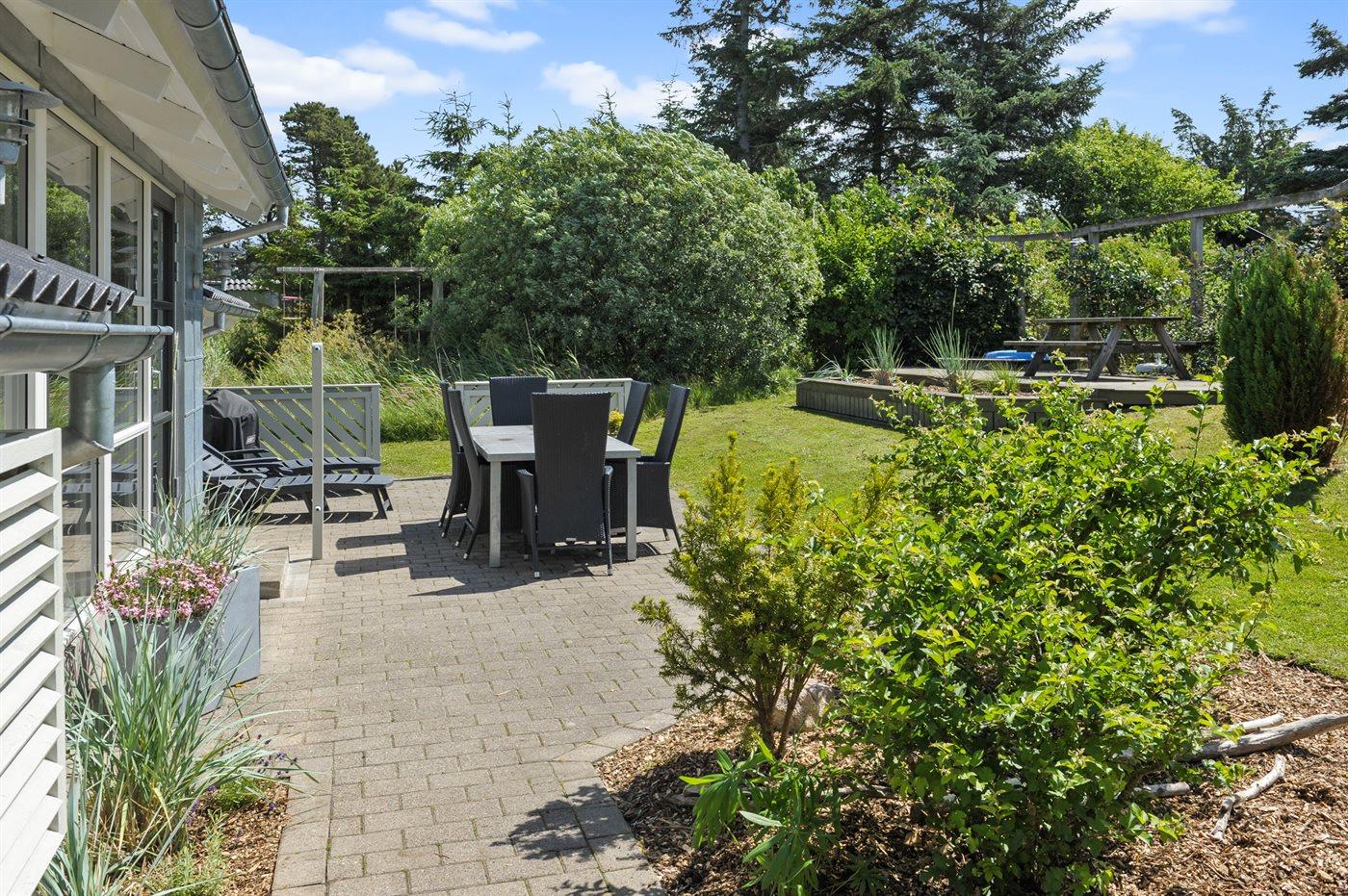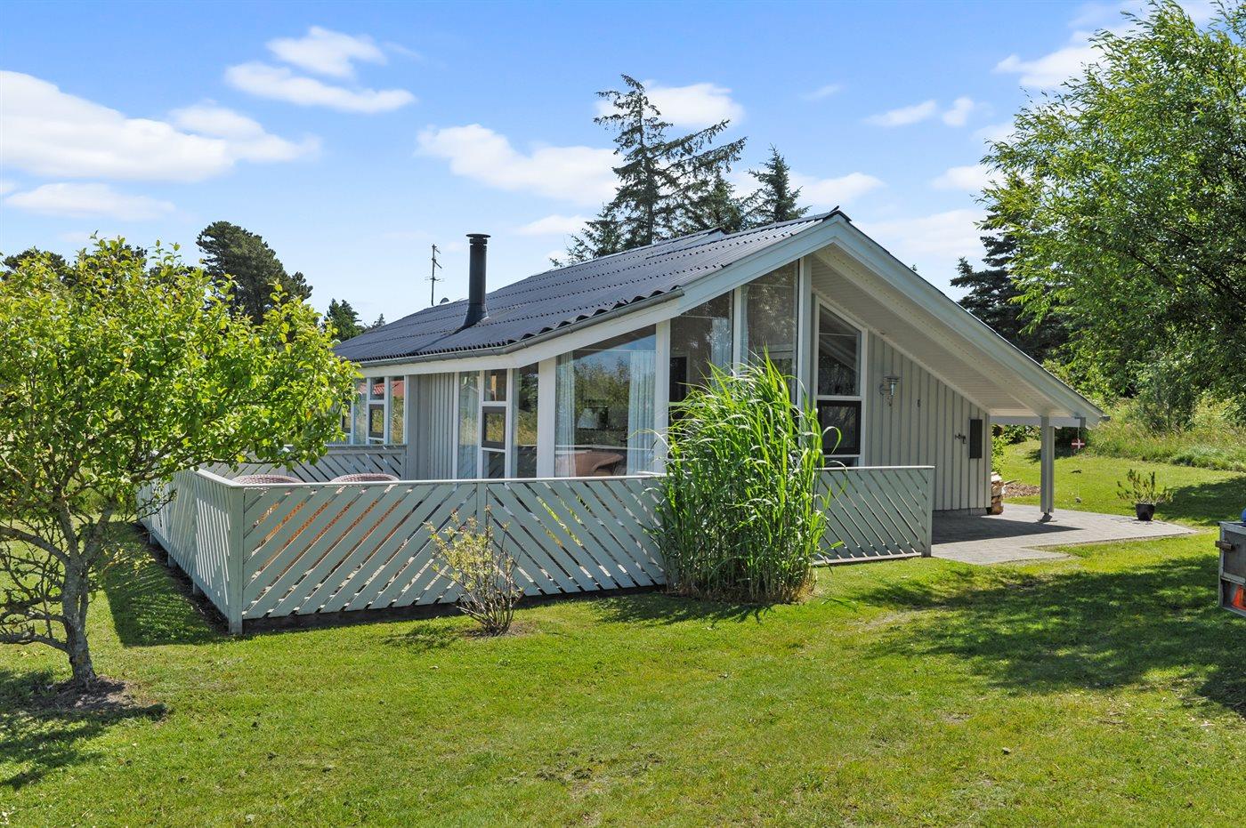 Ferieboligen er beliggende på en 1250 m² stor naturgrund. Der er 625 m til havet. Nærmeste forretning er beliggende i en afstand af 4000 m. Til ferieboligen hører 70 m² terrasseareal. Desuden er der 8 m² overdækket terrasse. Der er redskabsrum. Gynge. Sandkasse. Grill til rådighed. Der er installeret stik til opladning af elbil. CEE stik. Parkering ved ferieboligen.