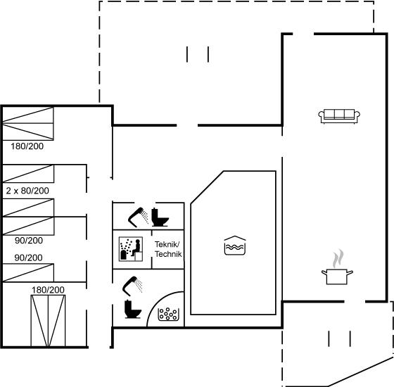 Der er i alt 4 soveværelser. Sovepladserne fordeler sig på: 4 sovepladser i dobbeltsenge. 4 sovepladser i enkeltsenge. Derudover er der 1 stk. barneseng.