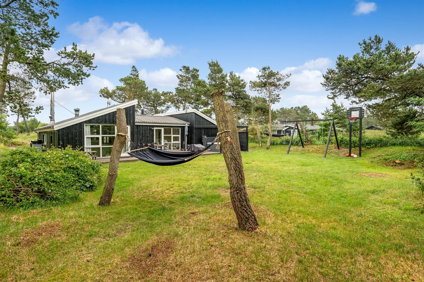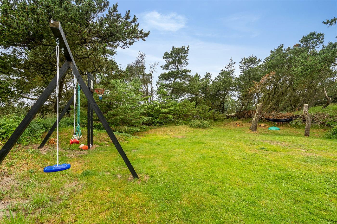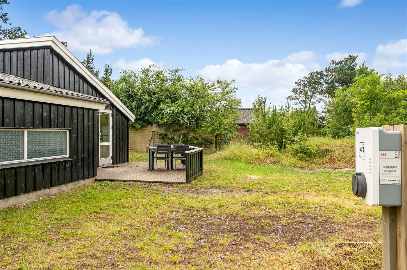 Ferieboligen er beliggende på en 1263 m² stor naturgrund. Der er 240 m til havet. Nærmeste forretning er beliggende i en afstand af 5000 m. Der er en golfbane i en afstand af 1500 m. Til ferieboligen hører åbent terrasseareal. Der er redskabsrum. Gynge. Sandkasse. Der ligger en legeplads i en afstand af 200 m. Grill til rådighed. Der er installeret stik til opladning af elbil. CEE stik. Med 22 kW ladeeffekt. Parkering ved ferieboligen.