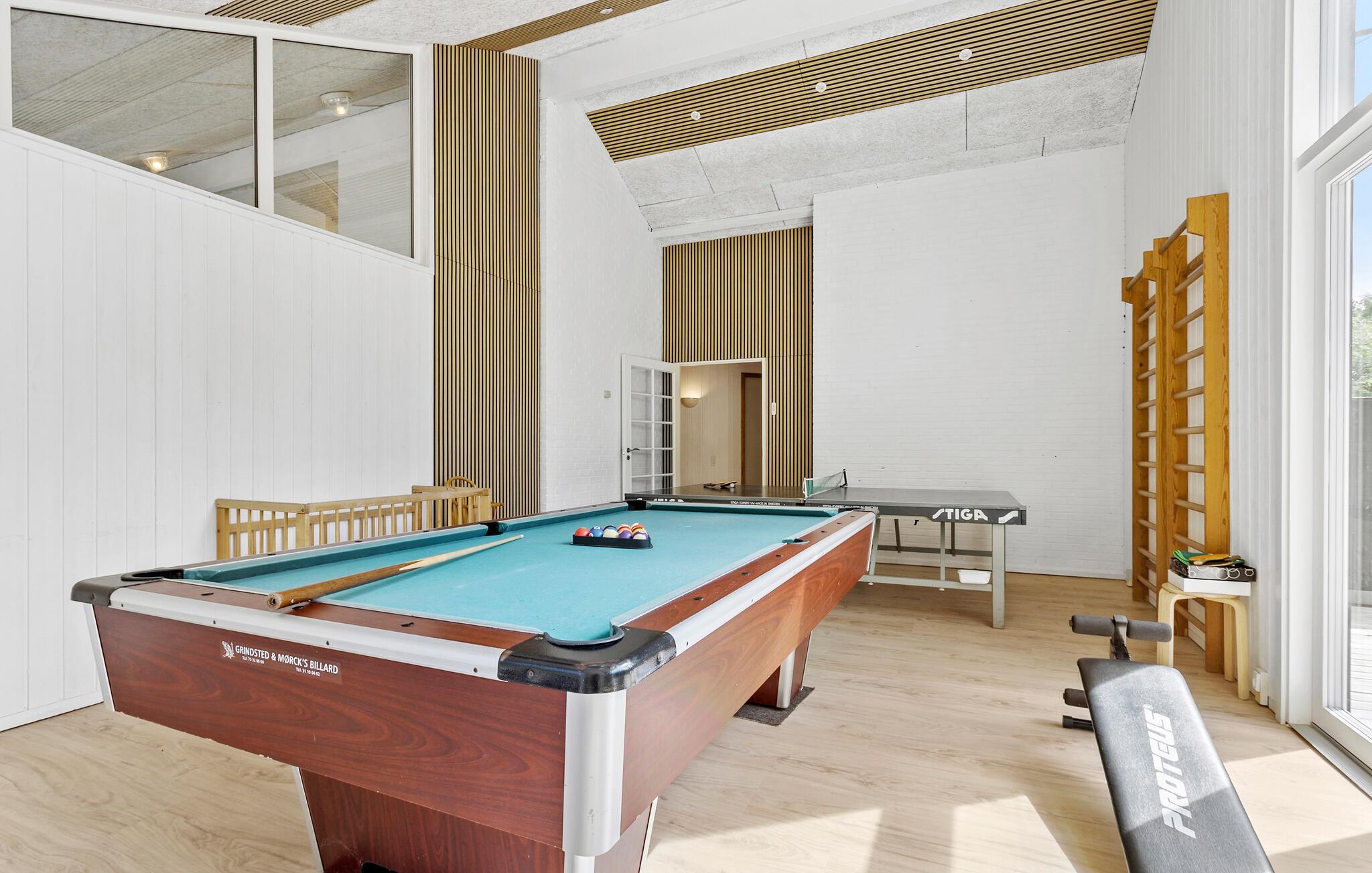 Stort feriehus ved Kjul Strand med pool, spabad, bordtennis og aktiviteter for hele familien.
