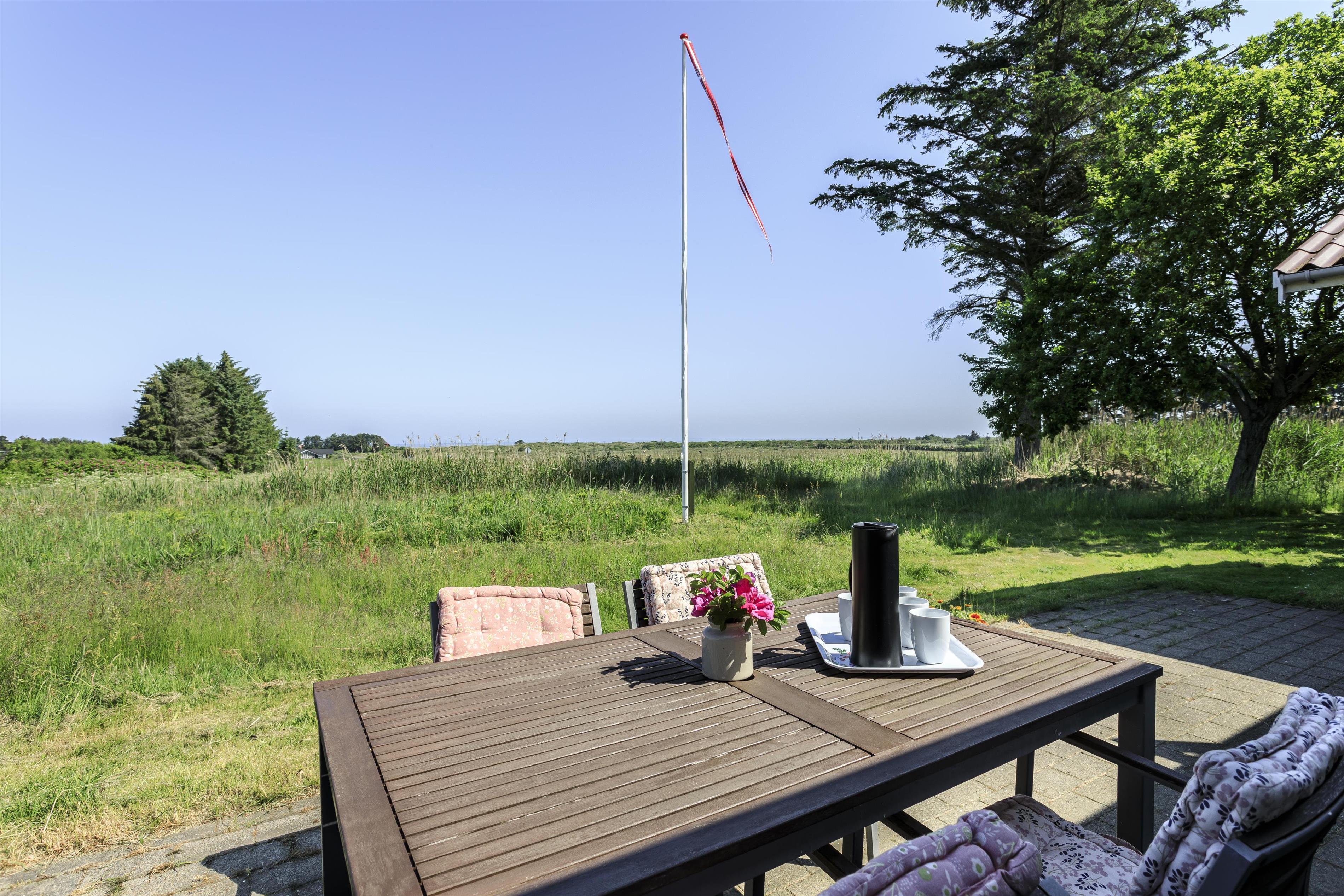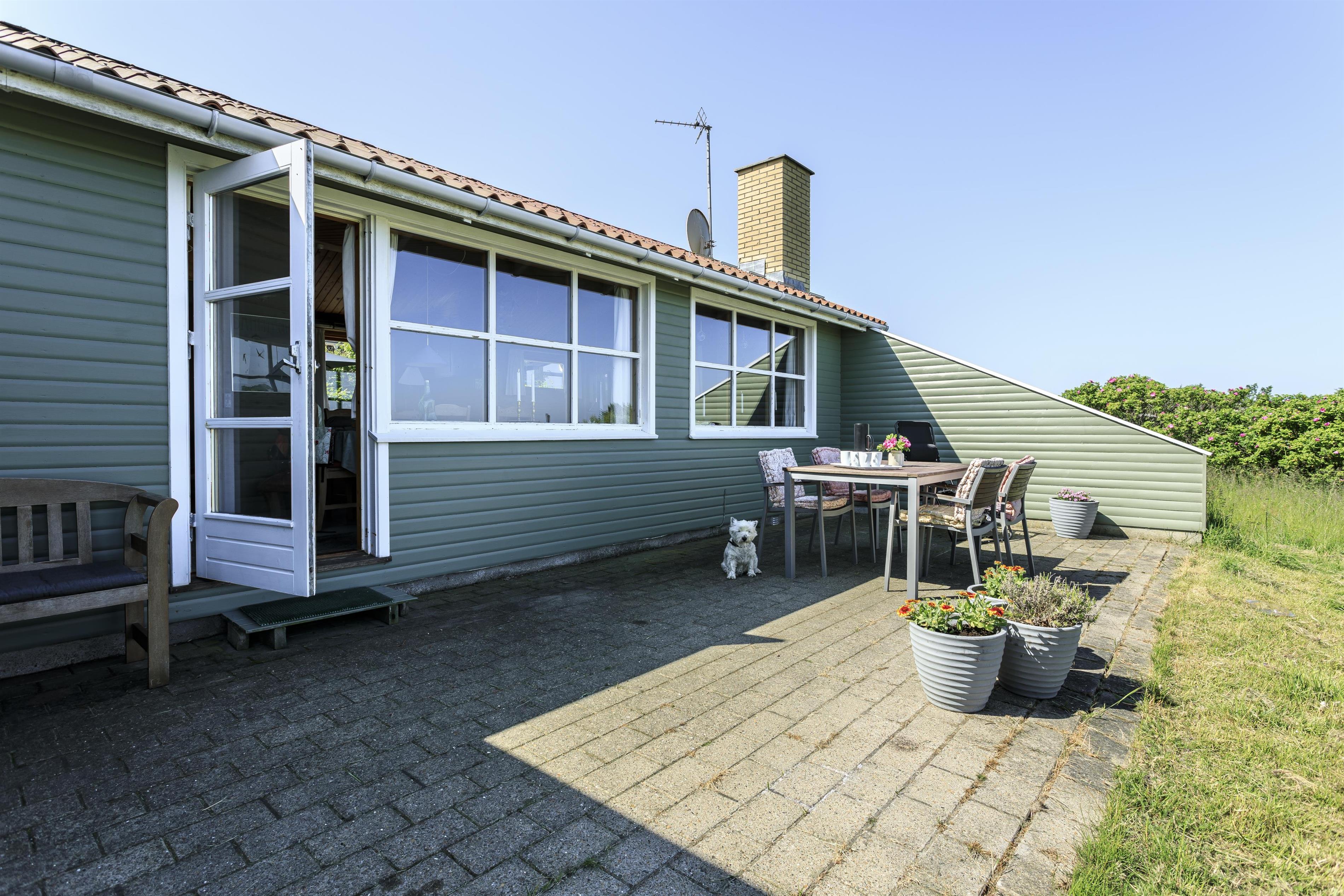 Nyd naturen fra første række. Husets udendørsarealer er designet til at nyde det danske sommervejr. Flere terrasser og hyggelige kroge gør det muligt at finde sol eller læ for vinden, alt efter jeres behov. Med lyden af det brusende hav i baggrunden kan I nyde lange sommeraftener, mens solen går ned over Vesterhavet. Grunden tilbyder desuden masser af plads til afslapning eller aktiviteter, mens I kan mærke den friske havluft og høre fuglenes kvidren.