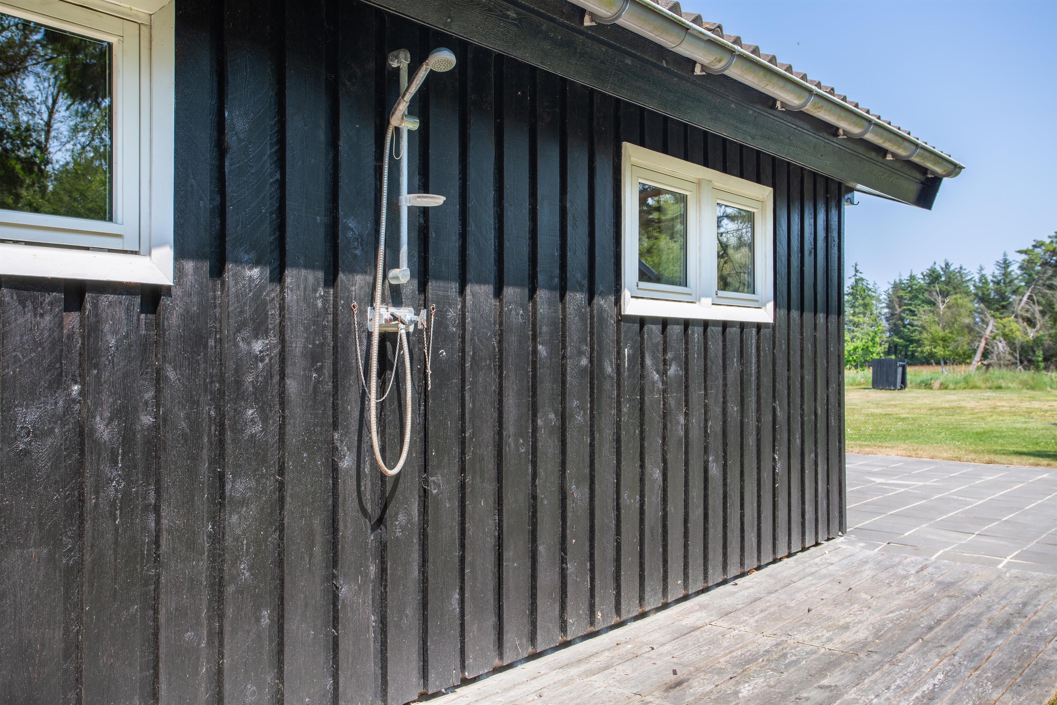 Sommerhuset ligger på en stor græsgrund med kig til havet. Her kan I nyde roen og de smukke omgivelser, mens børnene leger på græsset. Terrassen indbyder til hyggelige aftener under åben himmel, og den udendørs bruser er en lækker detalje efter en dag på stranden. Kjul Strand ligger kun 650 meter væk – en kort gåtur til en af Nordjyllands skønneste badestrande.