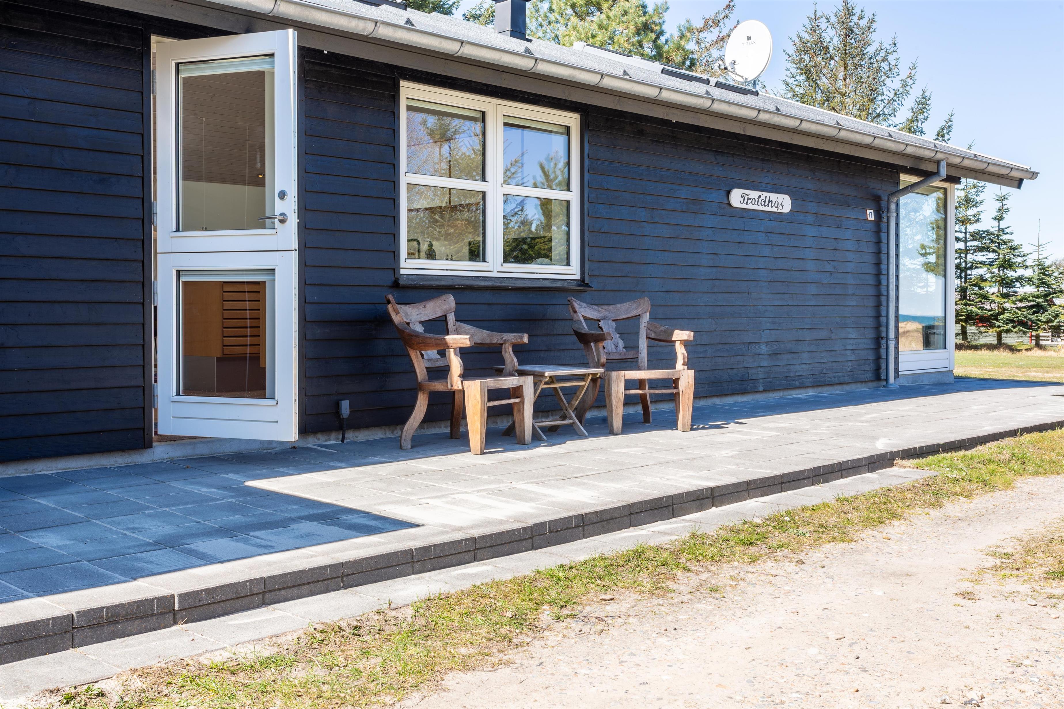Træd direkte ud fra terrassedøren til en stor have, hvor der er plads til leg og boldspil. Terrassen, som strækker sig hele vejen rundt om huset, giver rig mulighed for at finde en lækrog eller følge solens stråler fra morgen til aften. Haven er omkranset af træer, hvilket skaber en hyggelig atmosfære og beskytter mod den friske vestenvind. Fra grunden kan I nyde en fantastisk udsigt over havet og klitterne – flyt blot havemøblerne foran huset, og oplev en uforglemmelig solnedgang over Vesterhavet.