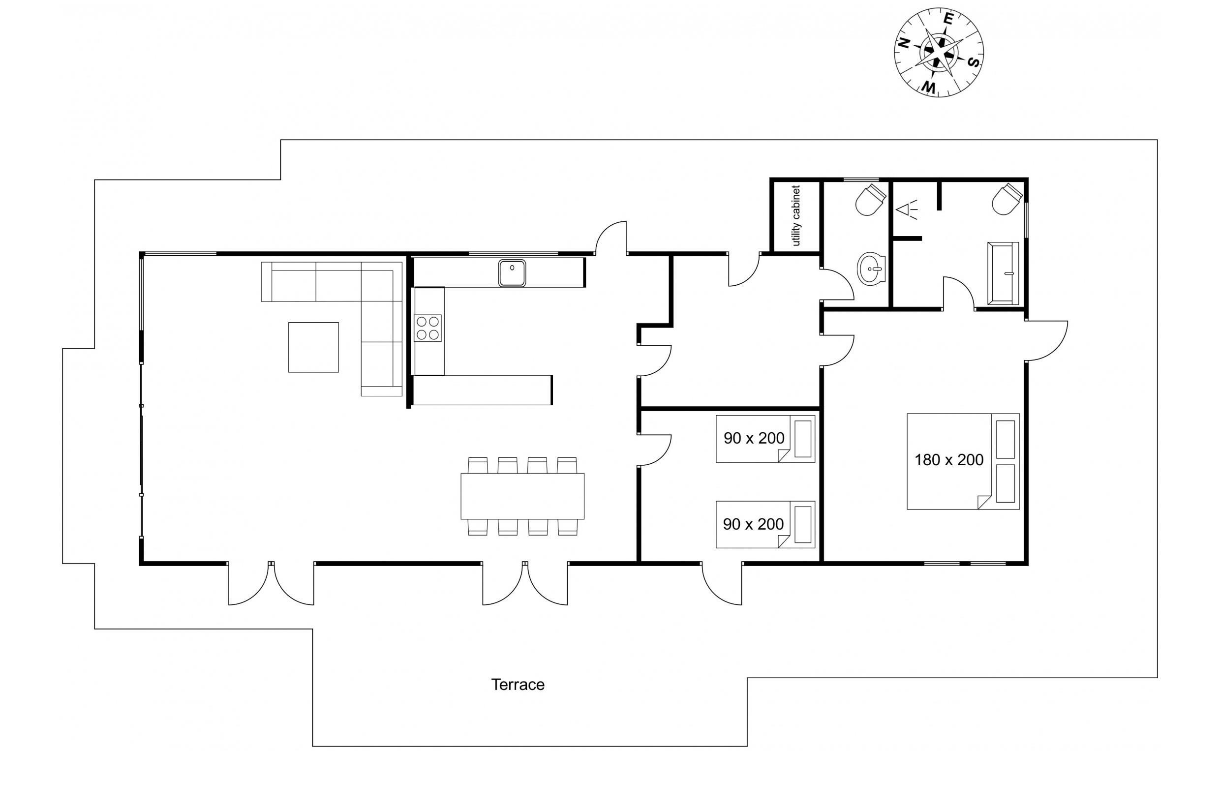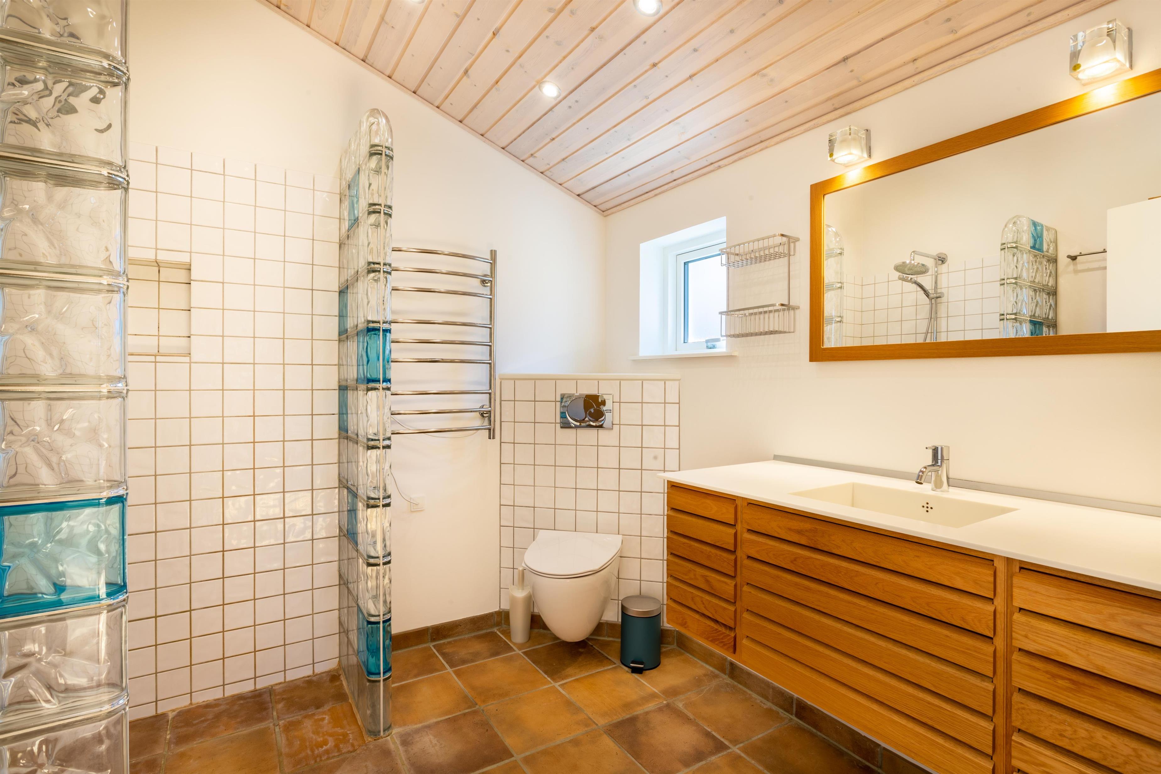 Huset har plads til 6 overnattende gæster. De to rummelige og lyse soveværelser har begge direkte udgang til haven. Derudover er der mulighed for to ekstra sovepladser på den komfortable sovesofa i stuen. Badeværelsesfaciliteterne omfatter et dejligt stort badeværelse samt et ekstra toilet, hvilket gør huset ideelt til både familier og mindre grupper.