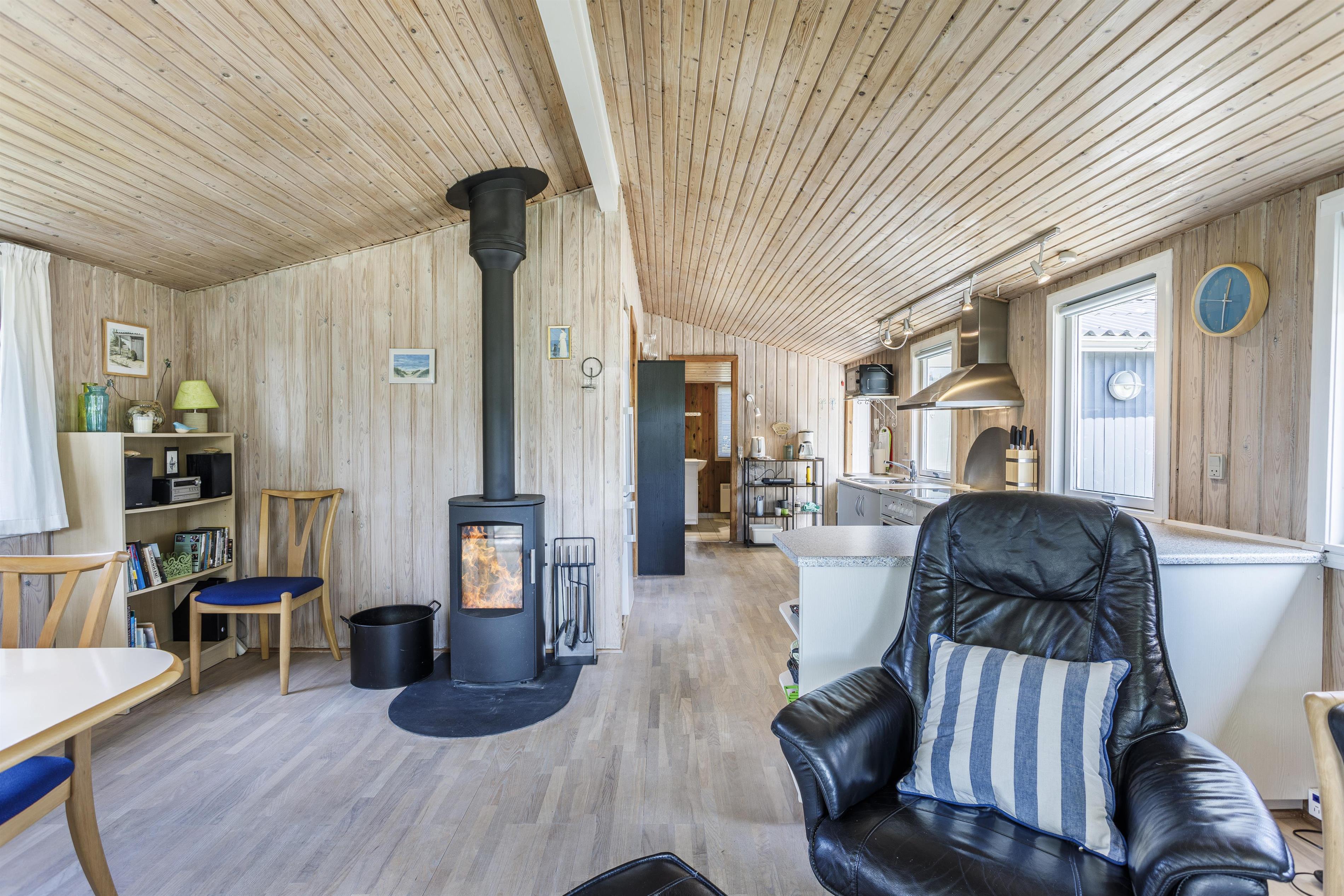 Feriehuset er indrettet med fokus på hygge og komfort. Den åbne opholdsstue med loft til kip skaber en lys og rummelig atmosfære, hvor familien kan samles om et brætspil eller slappe af foran brændeovnen på kølige aftener. Det veludstyrede køkken, som ligger i åben forbindelse med stuen, gør madlavningen til en leg, og mens der kokkereres i køkkenet kan dagens oplevelser vendes med familien.